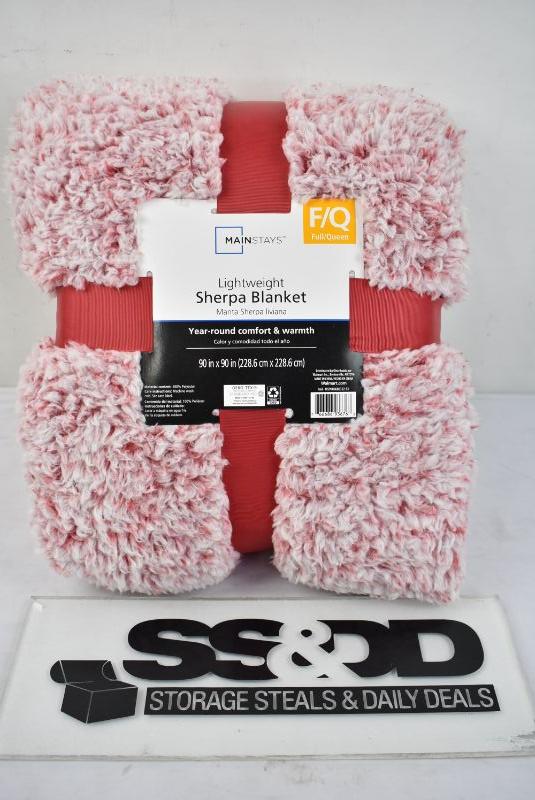Mainstays Lightweight Sherpa Blanket, 90" x 90" Full/Queen Size, Red - New