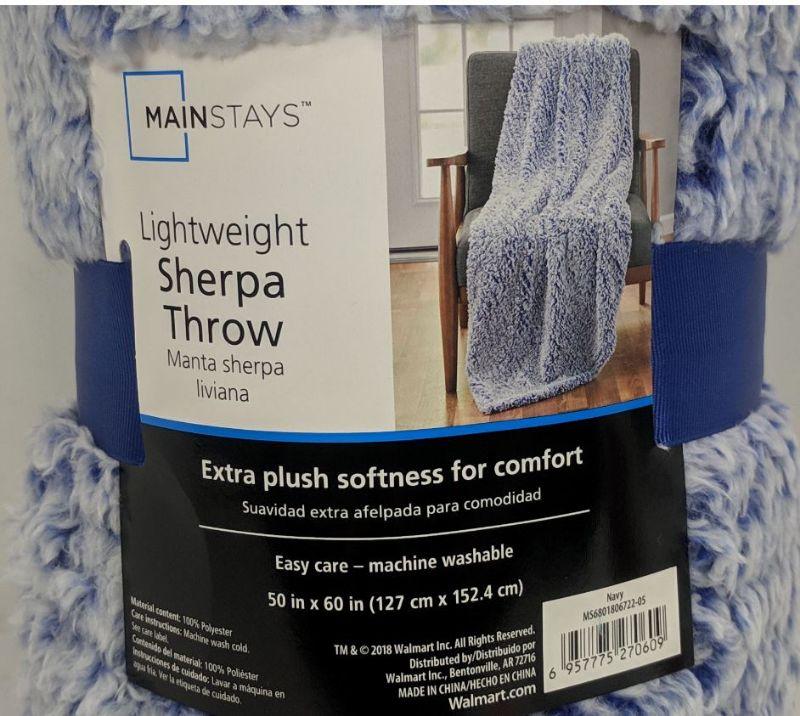 Mainstays Lightweight Sherpa Throw, Blue, 50" x 60" - New