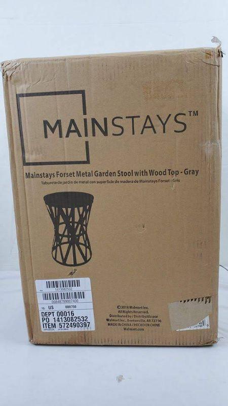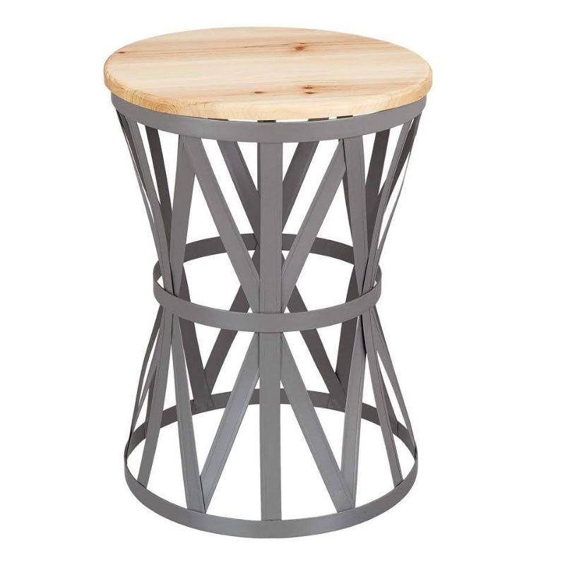 Mainstays Lillesand 18" Silver Metal Garden Stool with Wood Top - New