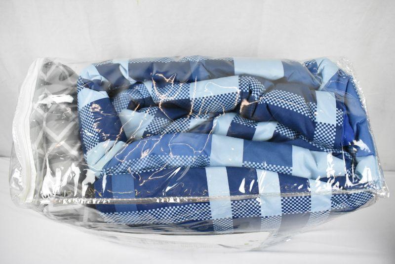 Mainstays Luxe Plaid 8 Piece Bed in a Bag Bedding Comforter Set, Full Blue - New