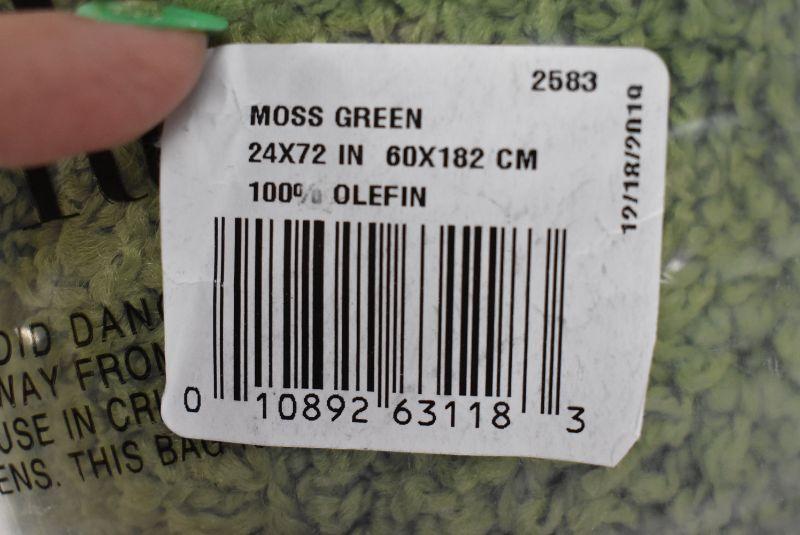 Mainstays Manchester Solid Plush Cut Pile Shag Rug Runner, Moss Green, 24" x 72" - New