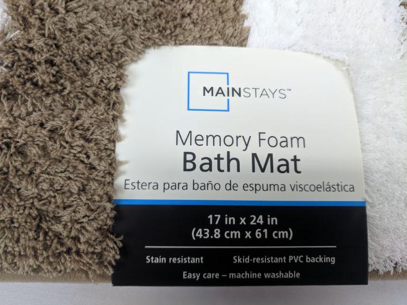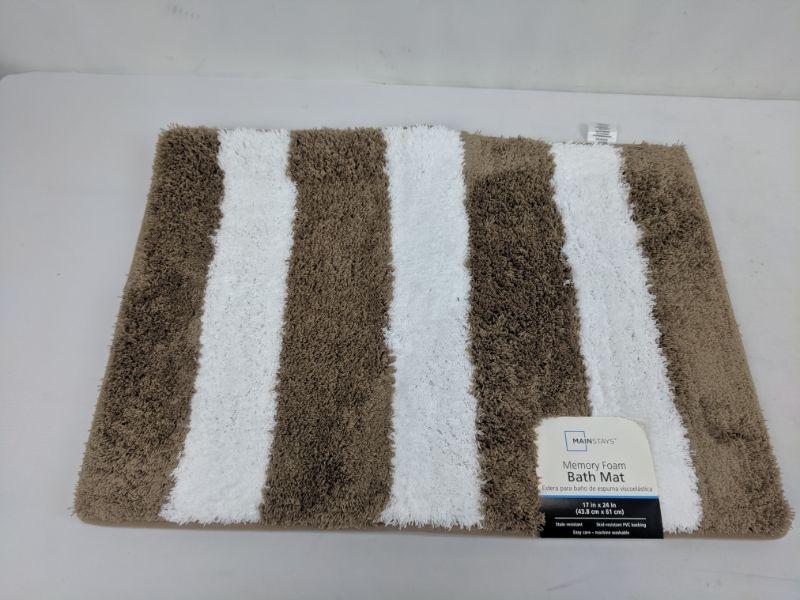 Mainstays Memory Foam Bath Mat, 17" x 24", Brown/White Striped - New