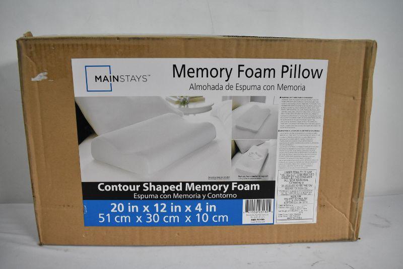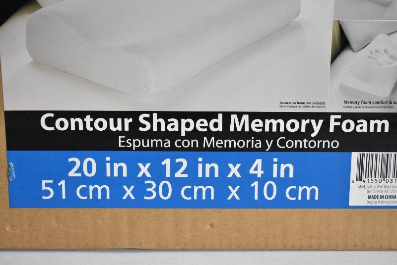 Mainstays Memory Foam Pillow, Contour Shaped 20" x 12" x 4" - New