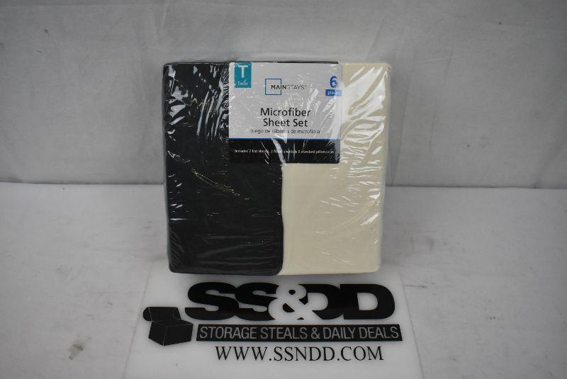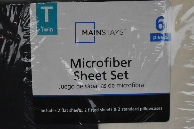 Mainstays Microfiber Ivory & Graphite 2 pack Twin Sheet Set - New