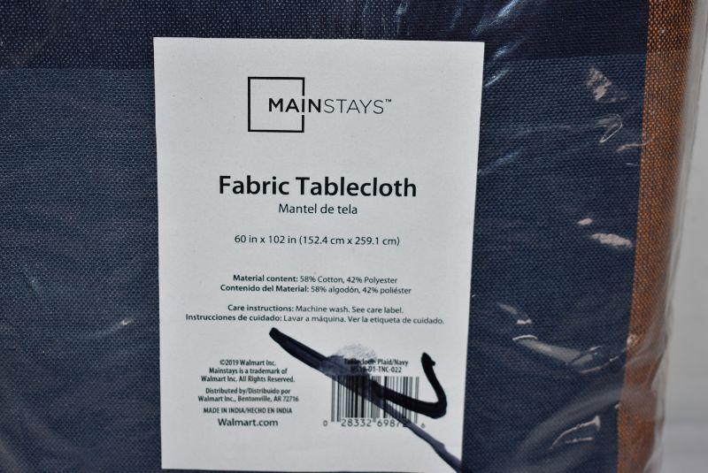 Mainstays Oversized Plaid Tablecloth, 60"W x 102"L, Navy - New