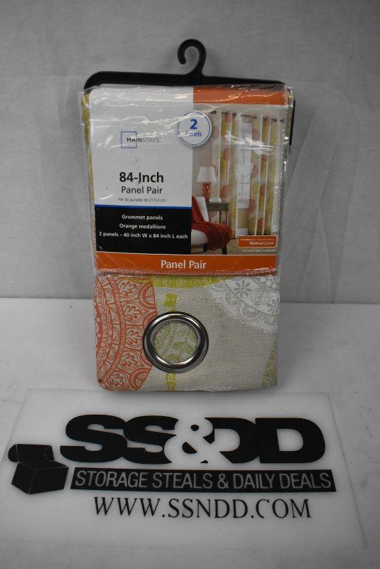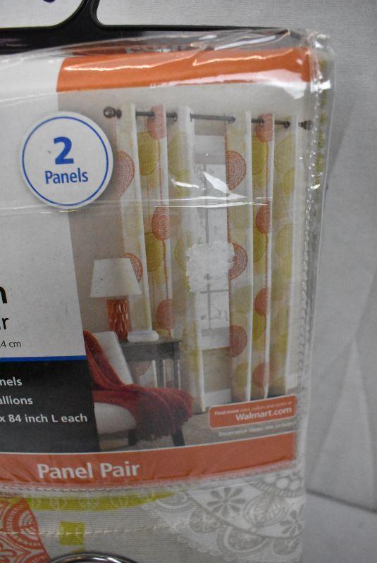 Mainstays Panel Pair, 40" x 84" each, Orange Medallions. New, but with warehouse dirt
