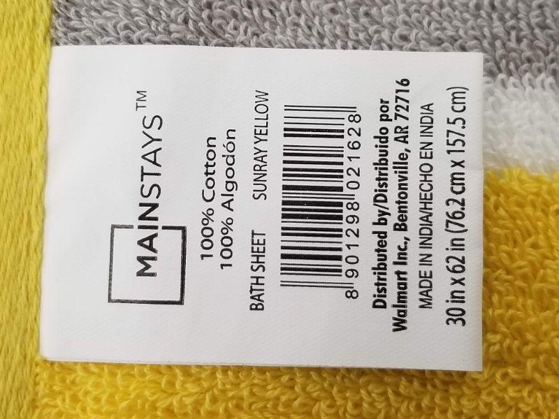Mainstays Performance Bath Sheets - 30"x 62", Sunray Yellow, Qty 2 - New