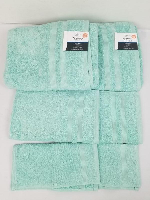 Mainstays Performance Bath Towel Set, 6 Piece, Classic Mint - New