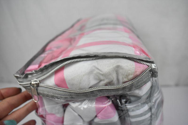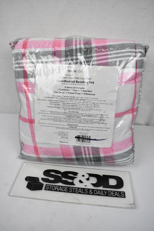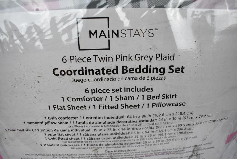 Mainstays Pink and Grey Plaid Bed in a Bag Bedding Set, Twin. Open Package w/ Warehouse Dirt