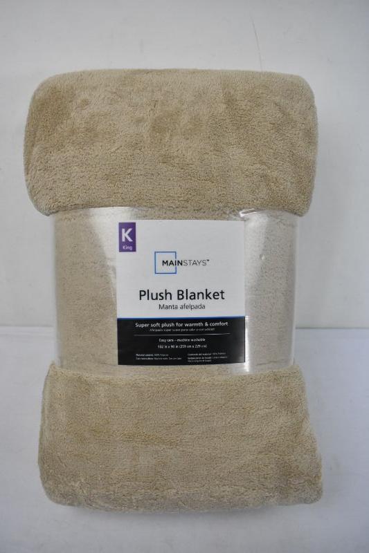 Mainstays Plush Blanket, King Size, Brownstone (Tan) - New