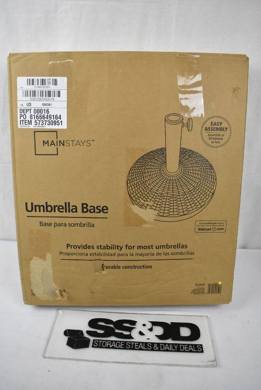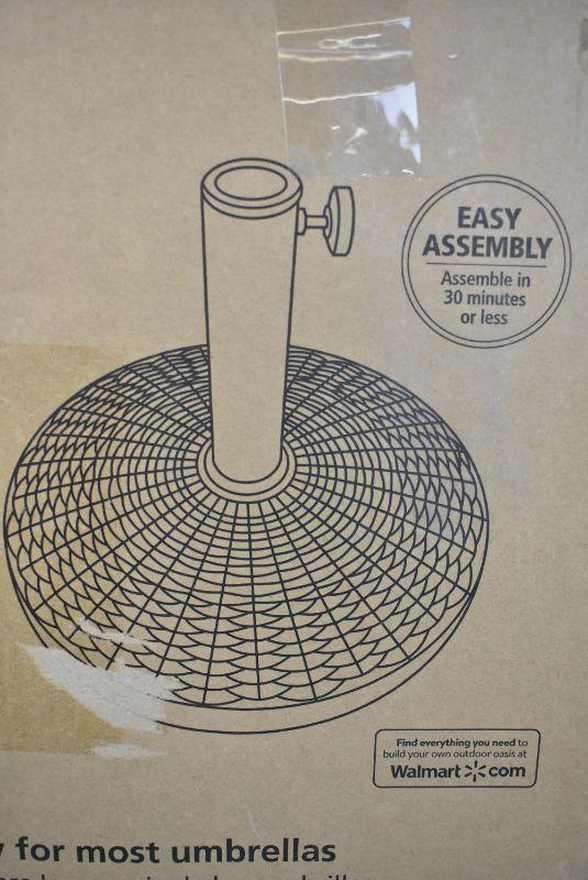 Mainstays Powder Coated Resin Umbrella Base, Black. Missing Lock Washer