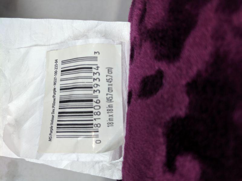 Mainstays Purple Velour Decorative Pillow, 18" x 18" - New
