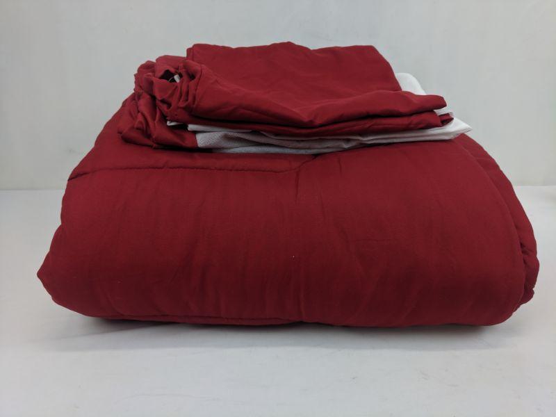 Mainstays Red Comforter, Bed Skirt, 2 Shams, Queen - Opened Package