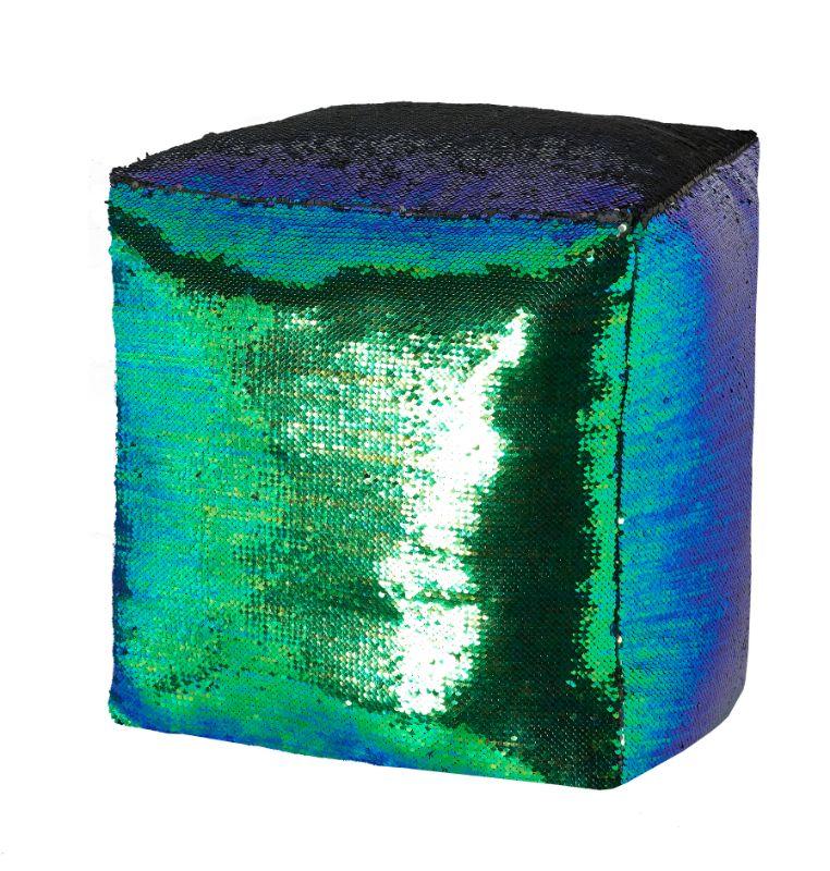 Mainstays Reversible Sequin Pouf, Mermaid Teal 17" x 17" x 17" Ottoman/Pouf - New