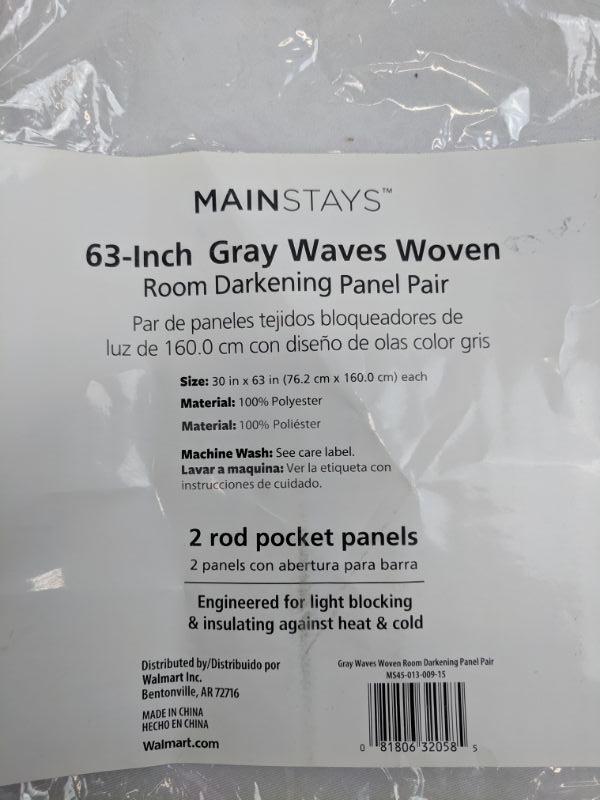 Mainstays Room Darkening Panel Pair, Gray, Waves, 30" x 63" - New