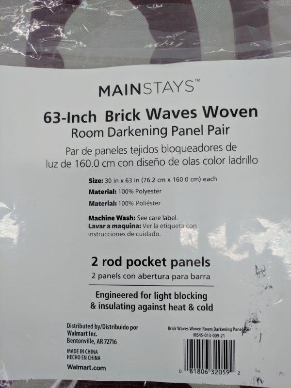 Mainstays Room Darkening Panel Pair, Red, Waves, 30" x 63" - New