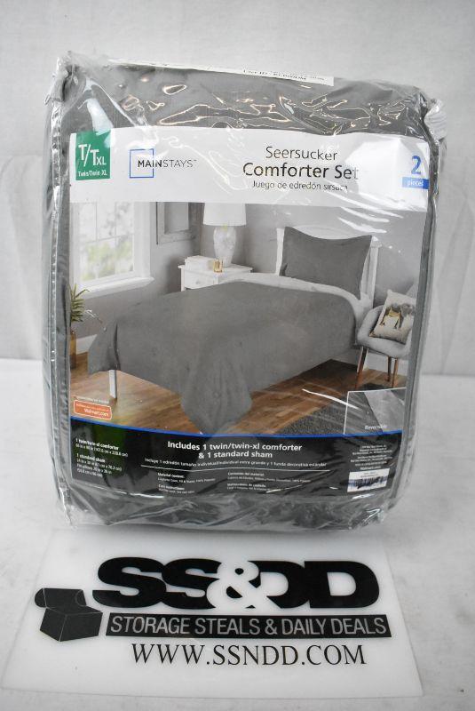 Mainstays Seersucker Twin/Twin XL Solid Reversible Comforter Set, 2 Piece - New
