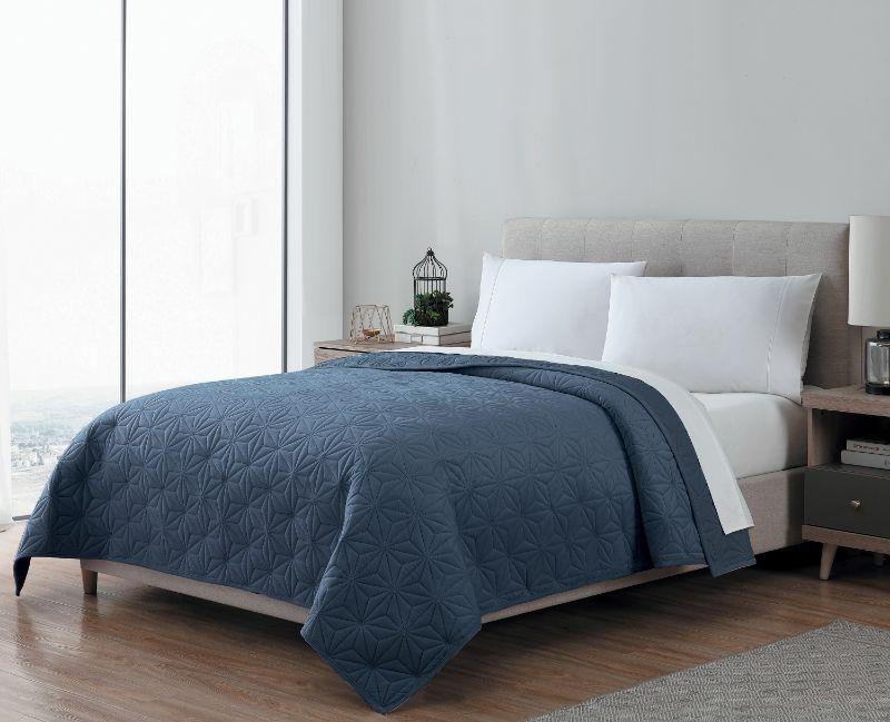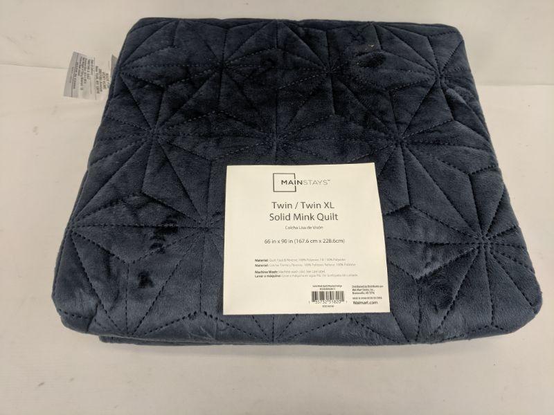 Mainstays Soft Plush Micro Mink Kaleidoscope Quilt, Twin/Twin XL, Indigo - New