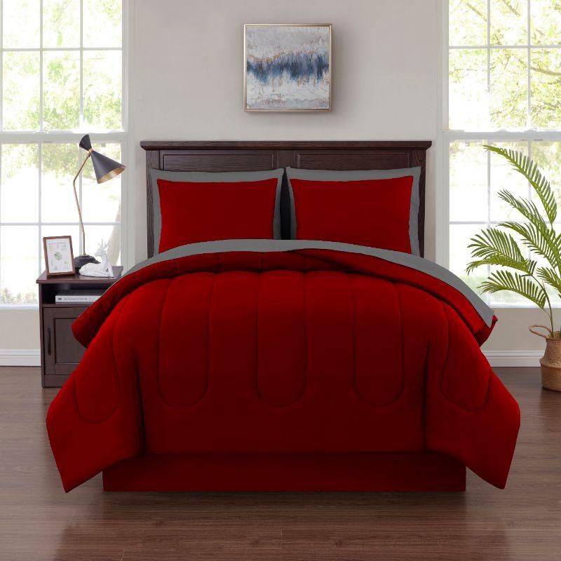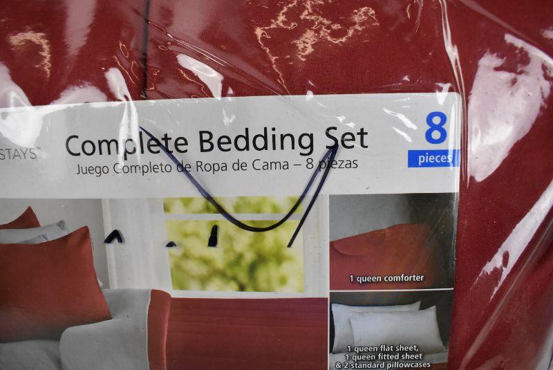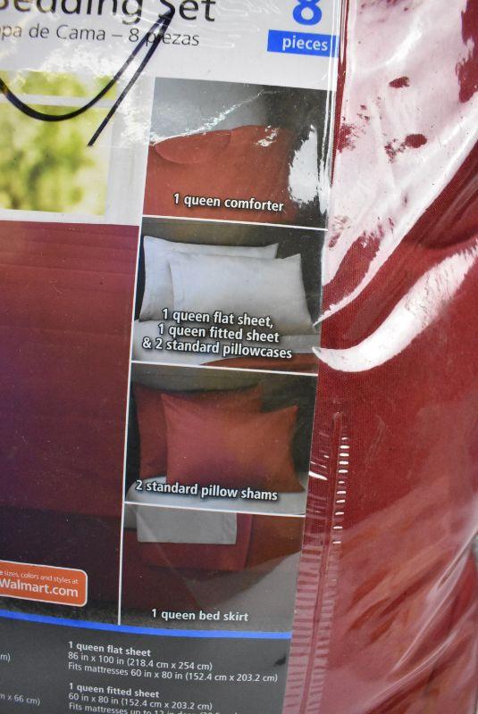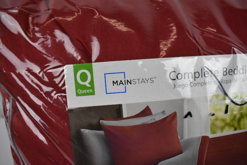 Mainstays Solid Bed in a Bag Coordinated Bedding, Queen, Red - New