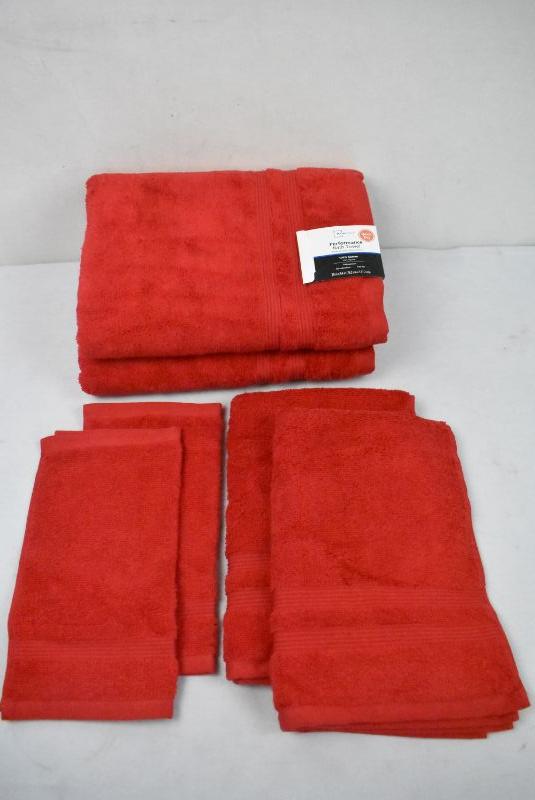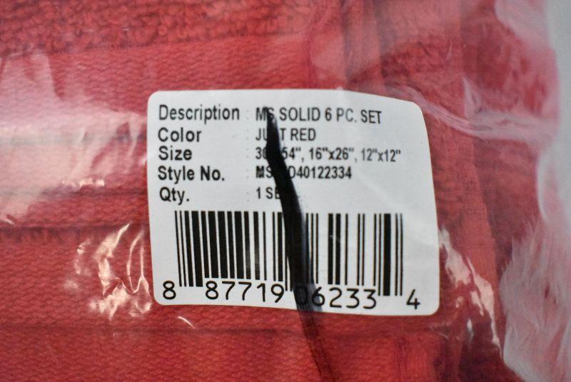 Mainstays Solid Performance Cotton Towel Set - 6 Piece Set, Red - New