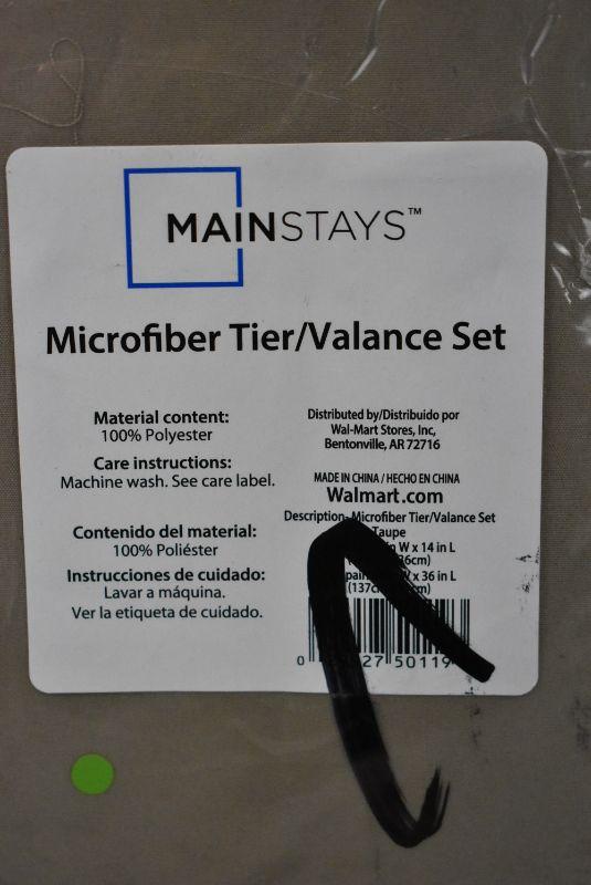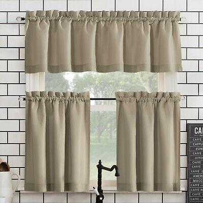 Mainstays Solid Taupe 3 Piece Kitchen Curtain Set - New