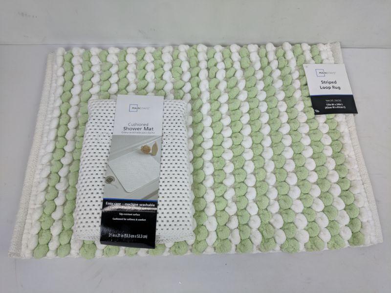 Mainstays: Stripe Loop Rug, Cushion Shower Mat 21" x 21" - New