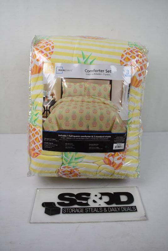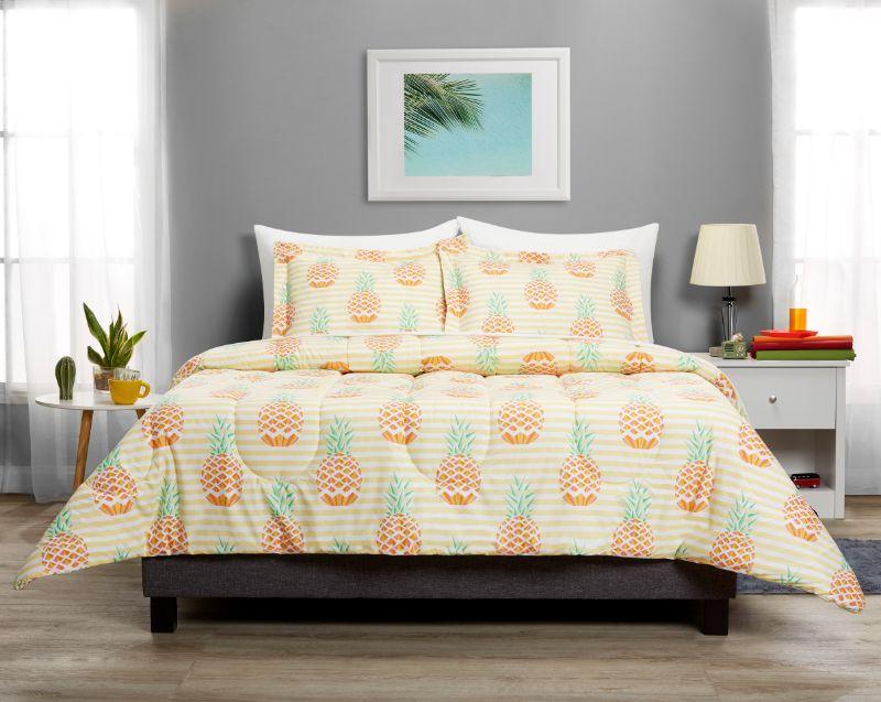 Mainstays Teen Yellow Pineapple Full/Queen Comforter & 2 Shams Set, $25 Retail - New