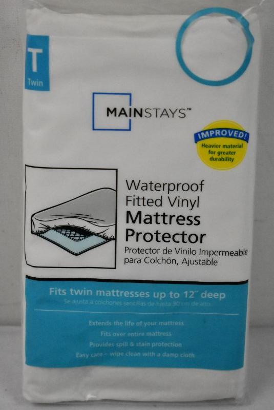 Mainstays Twin Mattress Protector: Waterproof, Fitted Vinyl - New