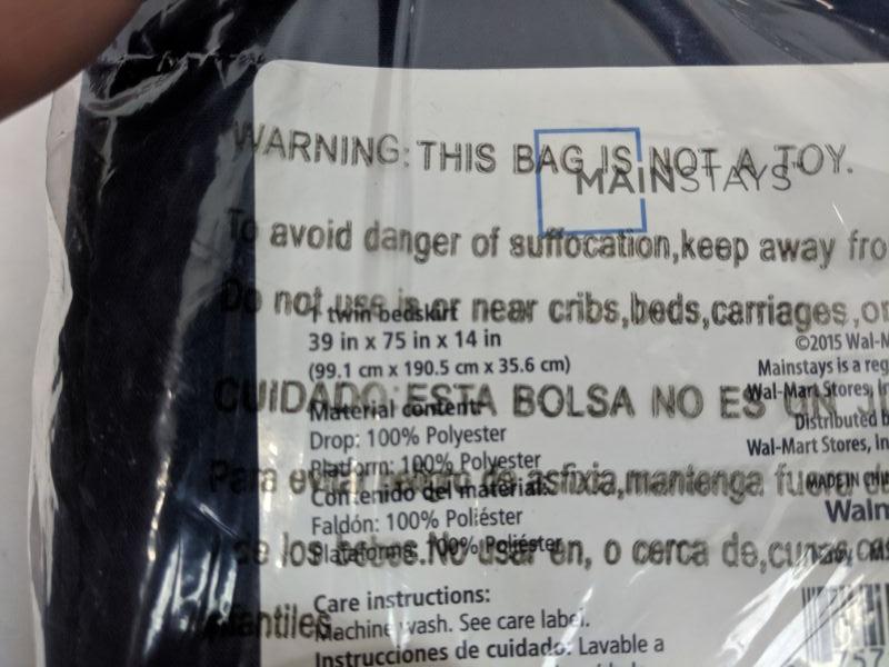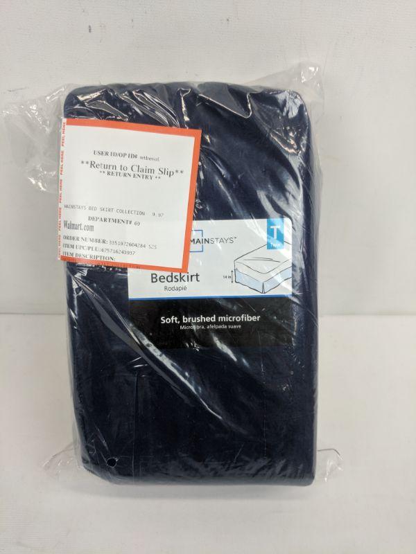 Mainstays Twin Size Bedskirt, Navy, Brushed Microfiber - New