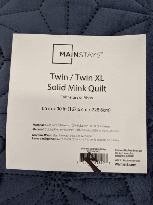 Mainstays Twin/Twin XL Solid Mink Quilt, Indigo - New