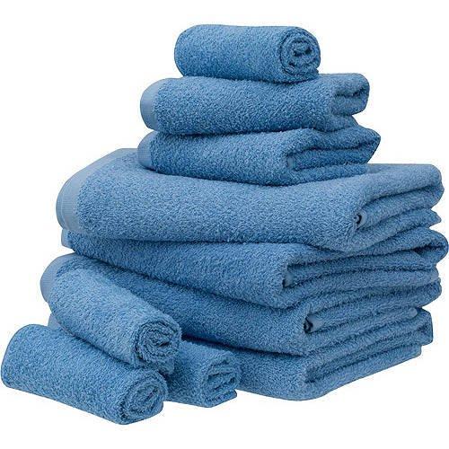 Mainstays Value Terry Cotton Bath Towel Set - 10 Piece Set, Office Blue