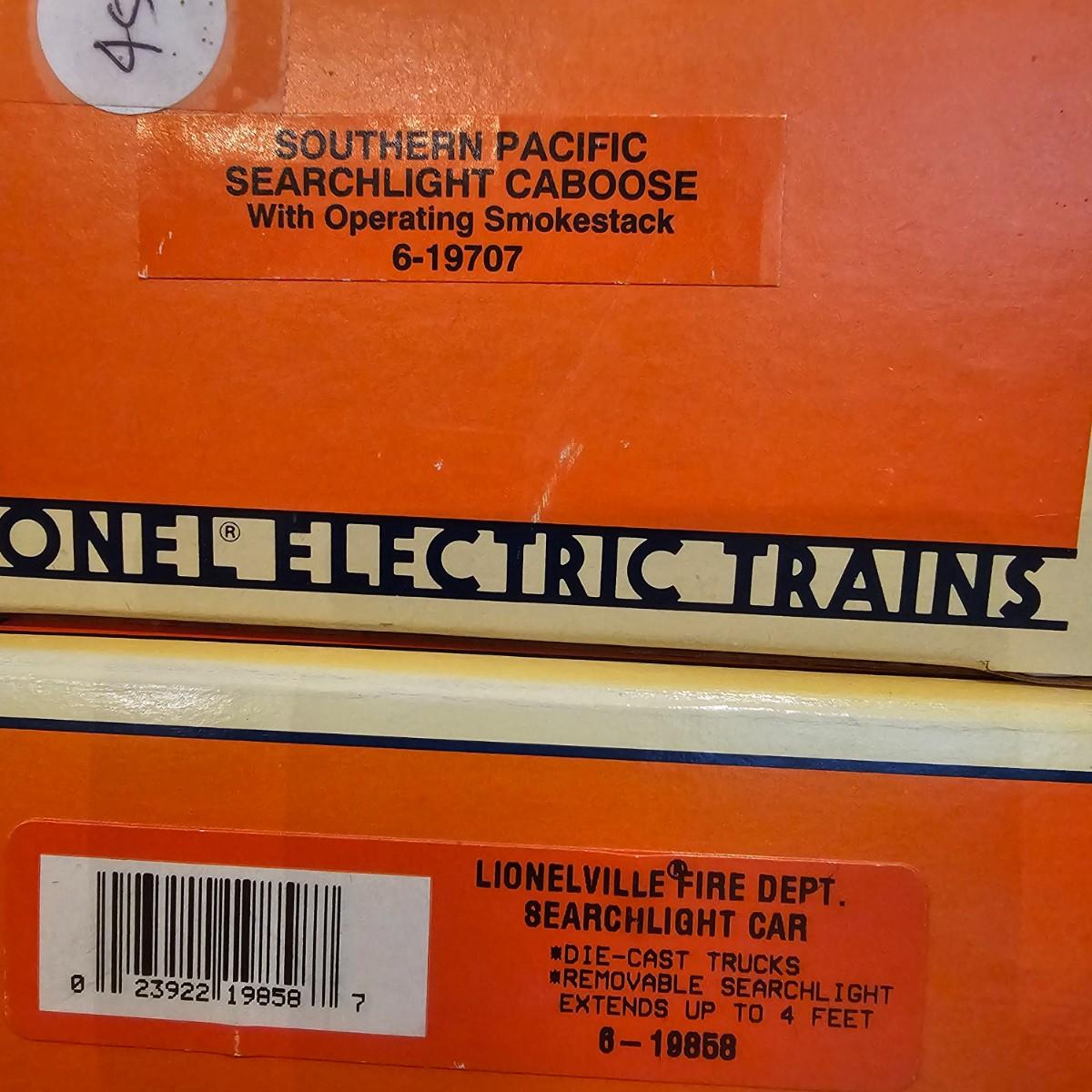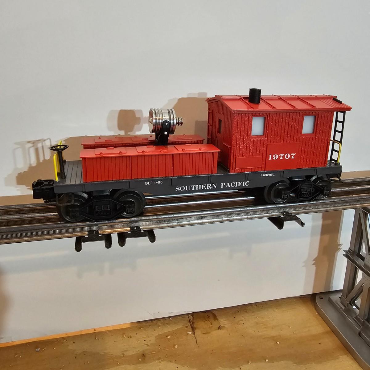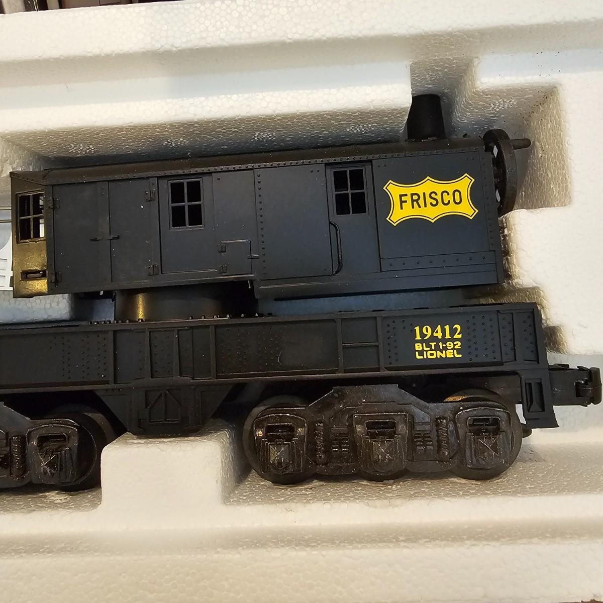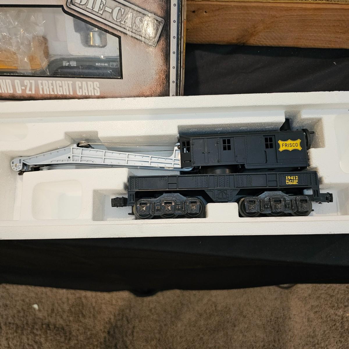 Searchlight cars, cranes, tool cars and more. Several different road names represented, U.P. , Erie, Frisco and others. Many of these cars have lights and one caboose has smoke features. Not all features tested. Original boxes for all items, see photos for details. Shipping available. Please note that any price tag seen on an item was not put there by Sterling Transitions and does not reflect the current value of the item. Any train tracks shown in photos are not included but are available in another lot in this sale.