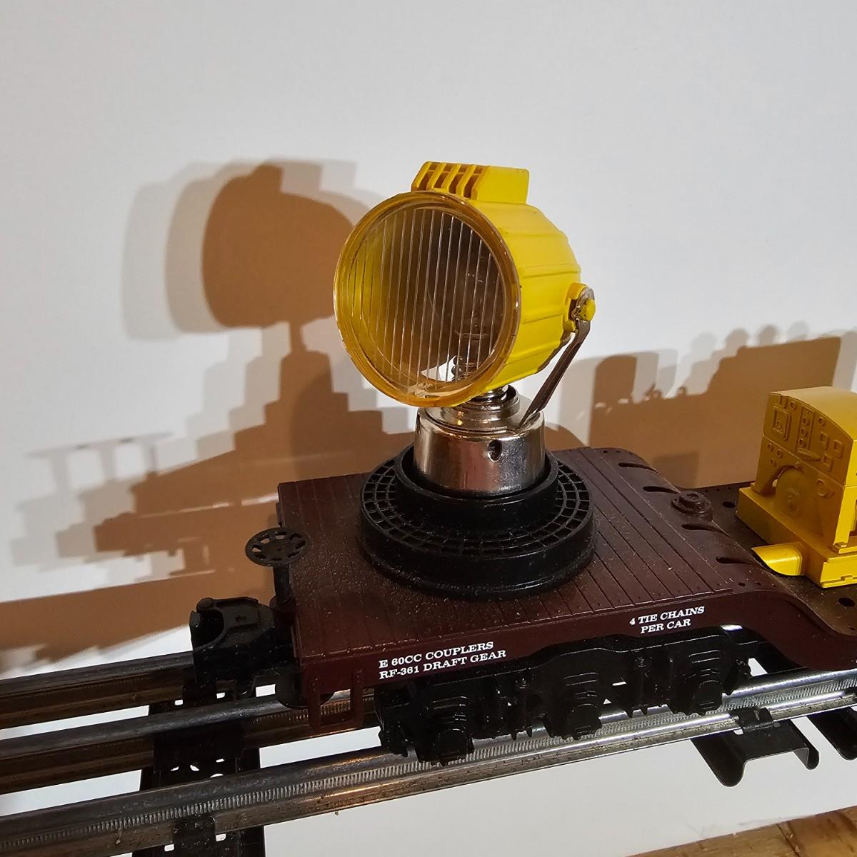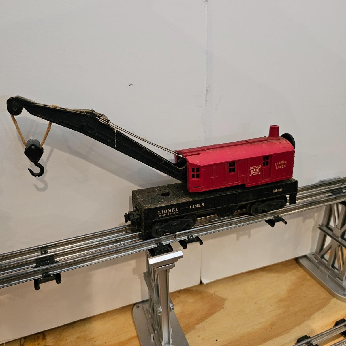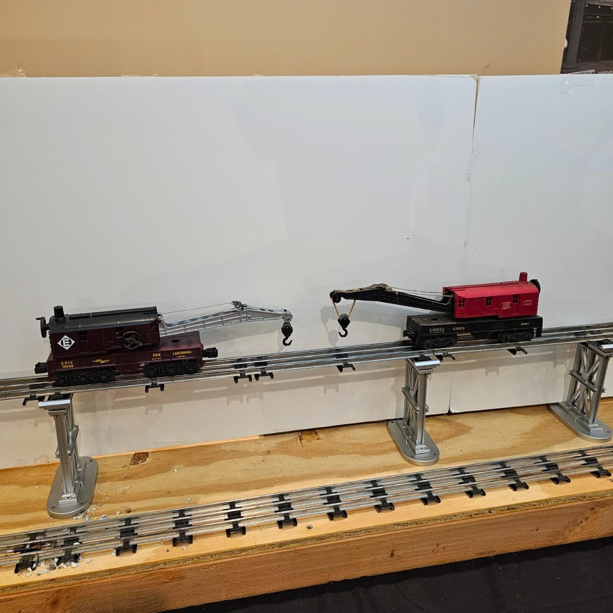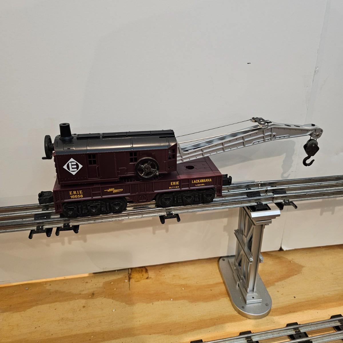 Searchlight cars, cranes, tool cars and more. Several different road names represented, U.P. , Erie, Frisco and others. Many of these cars have lights and one caboose has smoke features. Not all features tested. Original boxes for all items, see photos for details. Shipping available. Please note that any price tag seen on an item was not put there by Sterling Transitions and does not reflect the current value of the item. Any train tracks shown in photos are not included but are available in another lot in this sale.