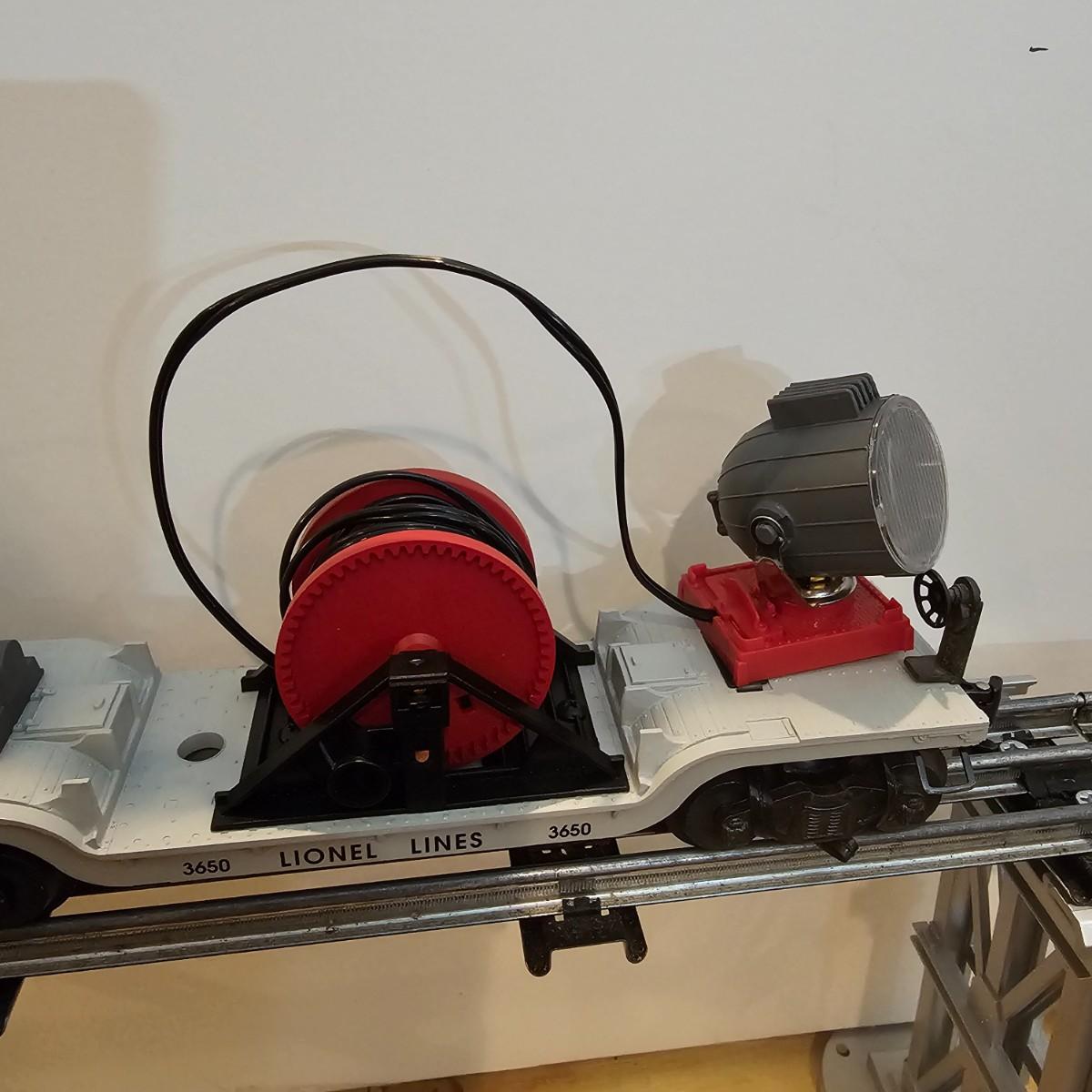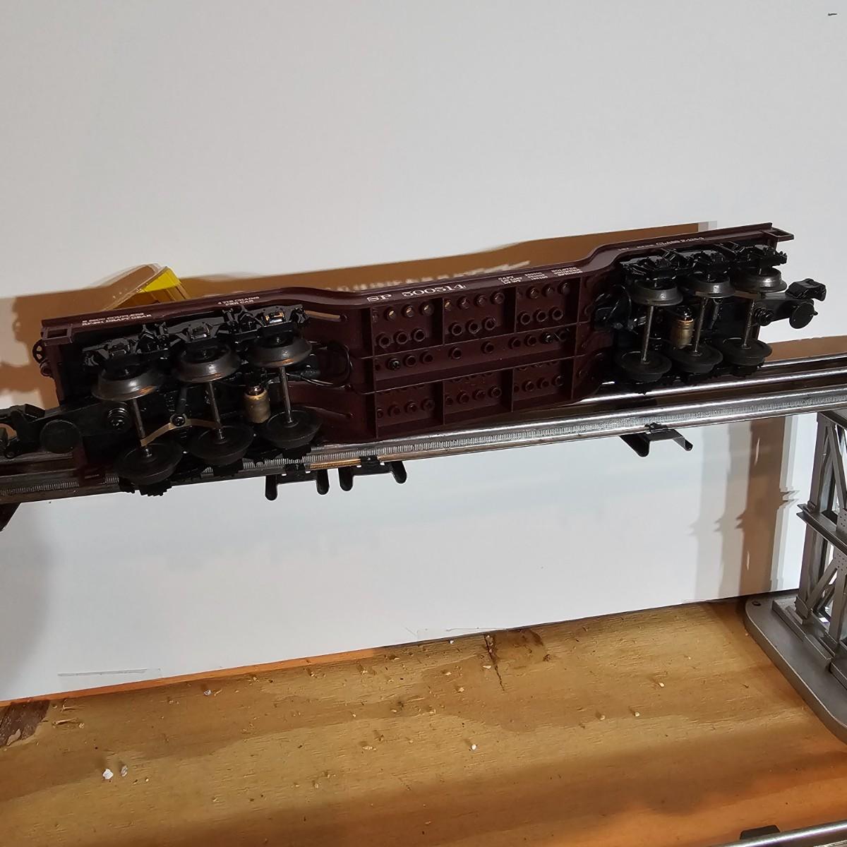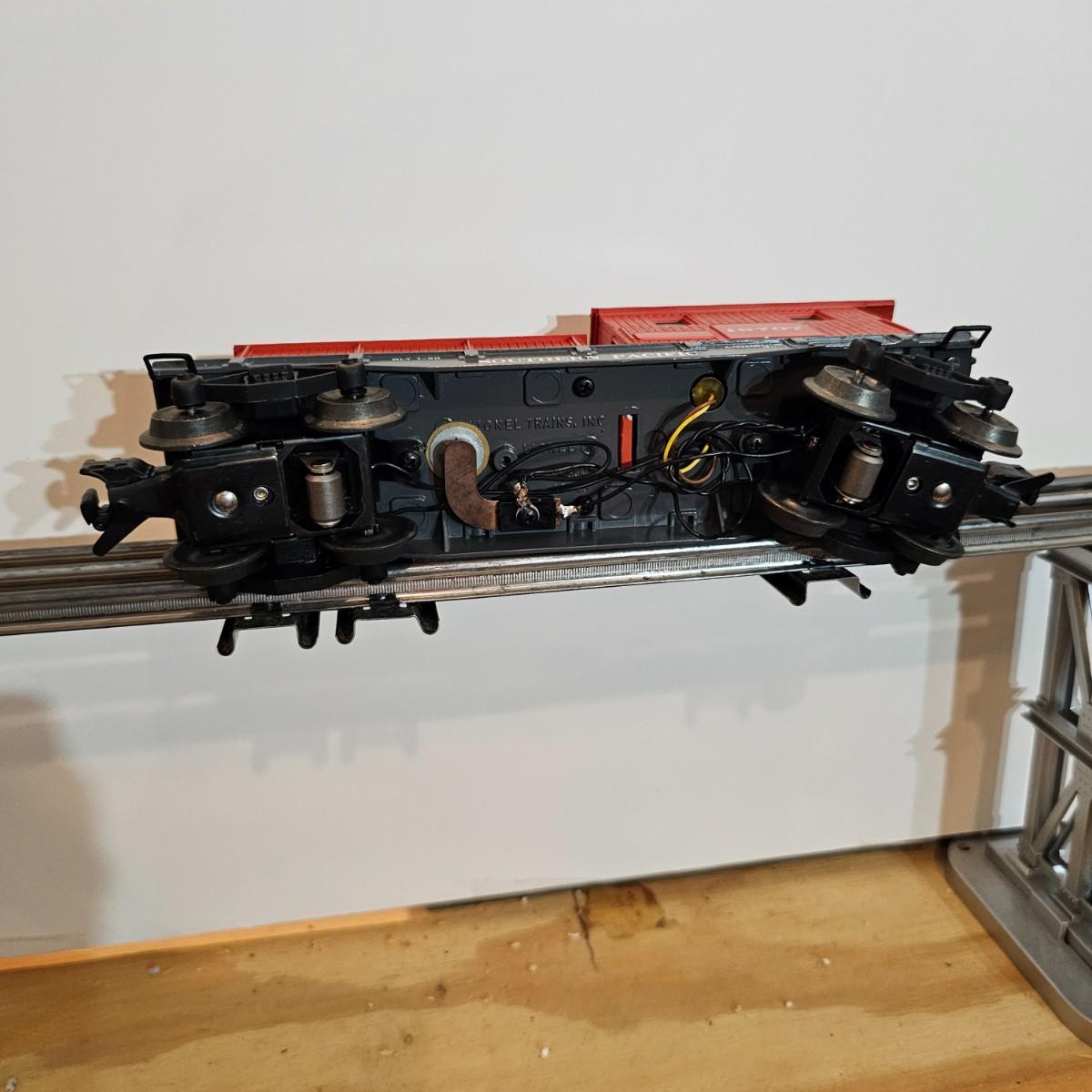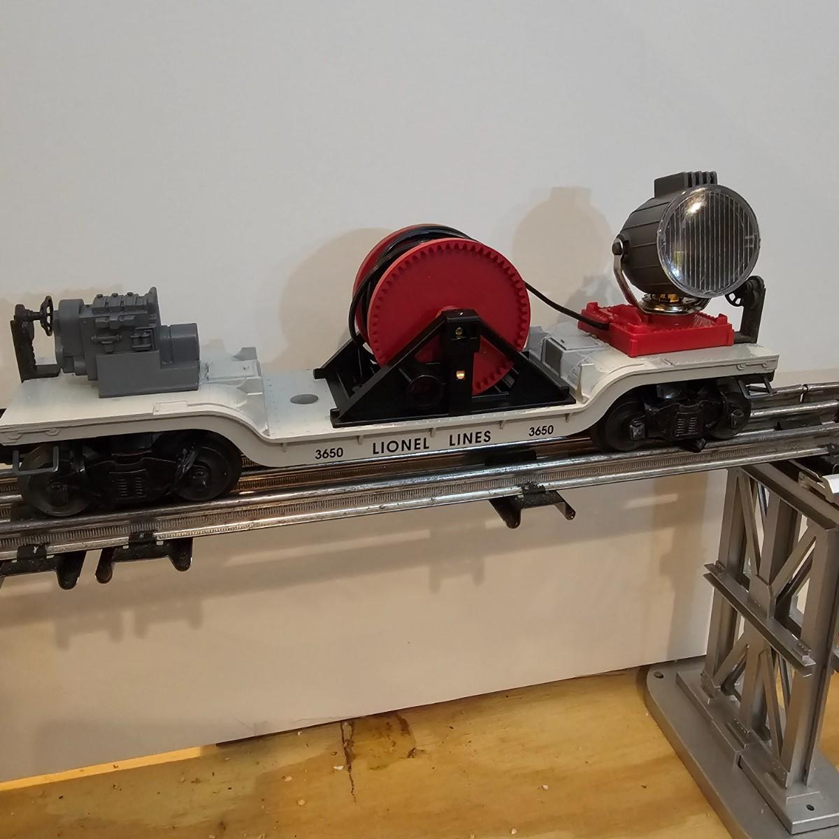 Searchlight cars, cranes, tool cars and more. Several different road names represented, U.P. , Erie, Frisco and others. Many of these cars have lights and one caboose has smoke features. Not all features tested. Original boxes for all items, see photos for details. Shipping available. Please note that any price tag seen on an item was not put there by Sterling Transitions and does not reflect the current value of the item. Any train tracks shown in photos are not included but are available in another lot in this sale.