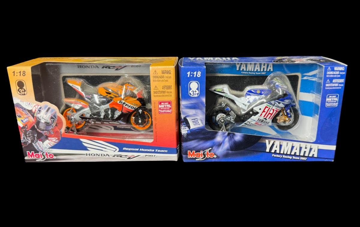 Includes a 2007 Honda RCV 212, and a Yamaha Factory Racing Team 2007. Total of two pieces. In the original packaging.