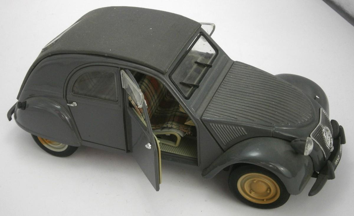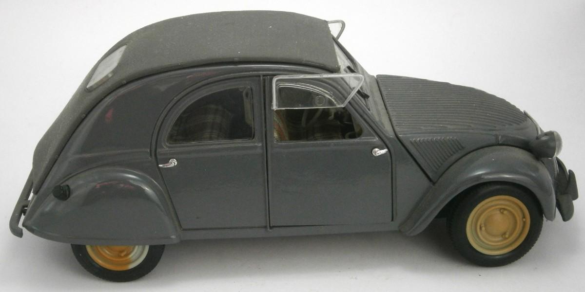 Maisto 1952 Special Edition Citroen 2CV Gray Die-cast - 1:18 Scale, 8 1/2 in. long, die cast metal and plastic, one head light broken off.