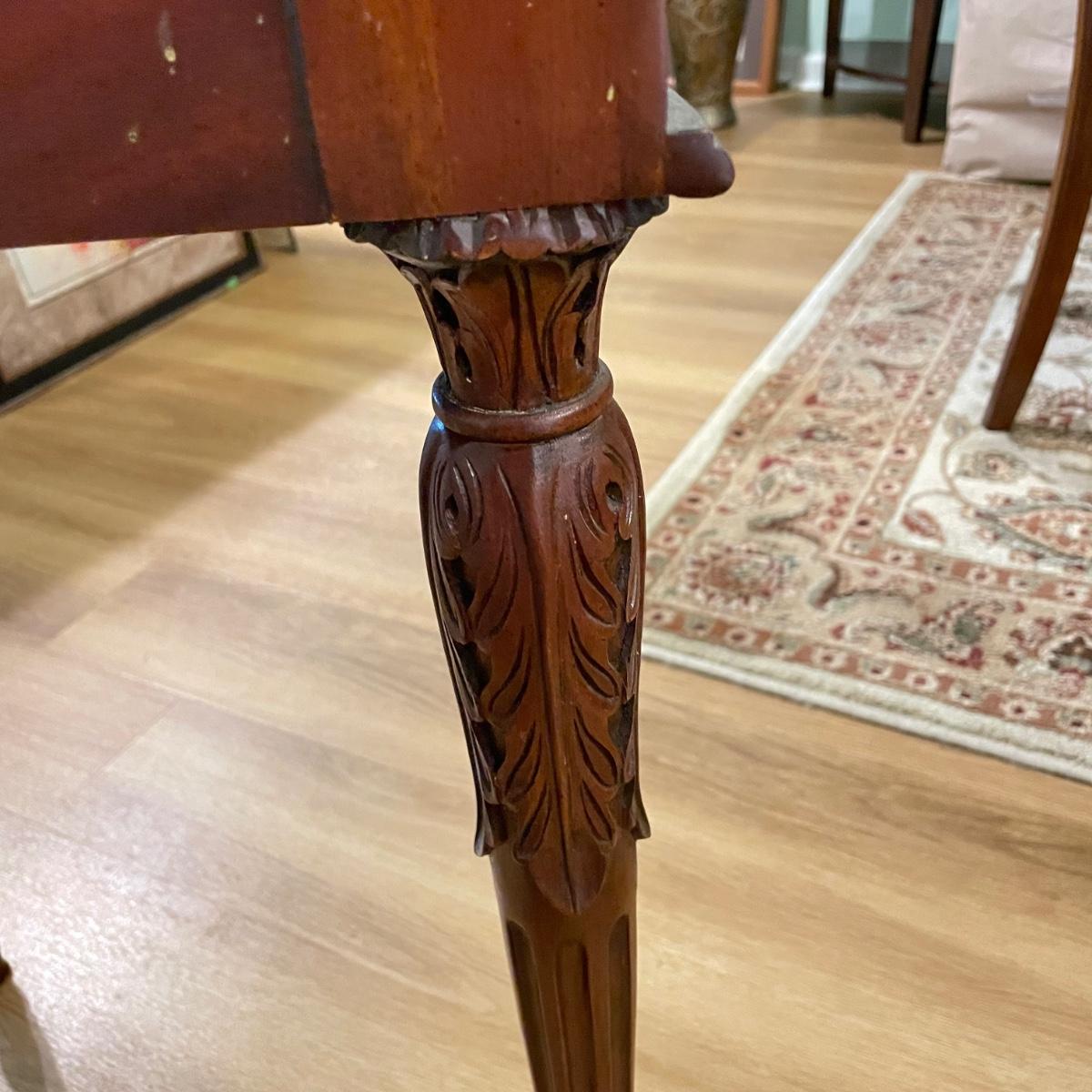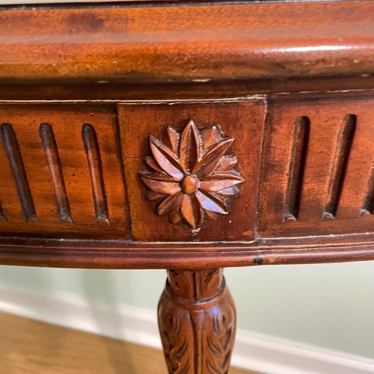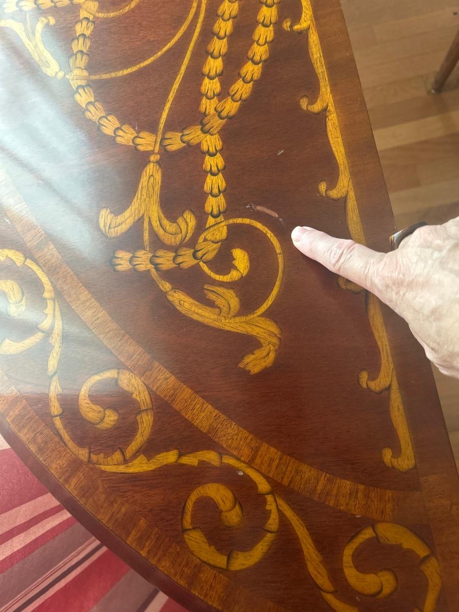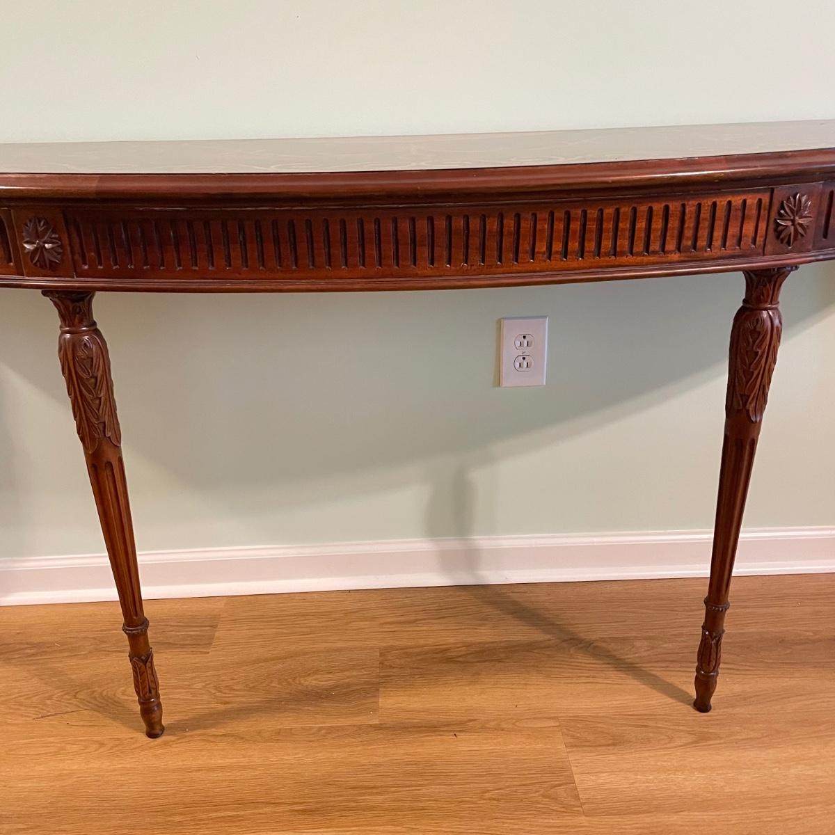 Absolutely stunning console table by Maitland-Smith with intricate inlay. One pretty good gouge on top and chipped overlay on back (see pic). Table measures 71” x 19” x 32”H. Local pick up only. Winning bidder must bring assistance to help move and load this item due to its weight and/or size. Item is located in garage with no steps involved to load.