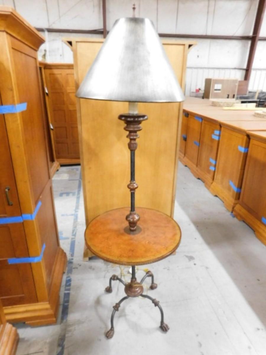 Maitland-Smith Regency Design Metal and Wood Post Lion Foot Floor Lamp with Center Table Choice B. Expect some wear or scratches to the finish. Shipping option available via freight or local mover at Buyer's expense. Buyer must have all shipping scheduled within the stated dates and times of pickup. Recommended local mover is Beaty Bros. Moving 828-201-2982