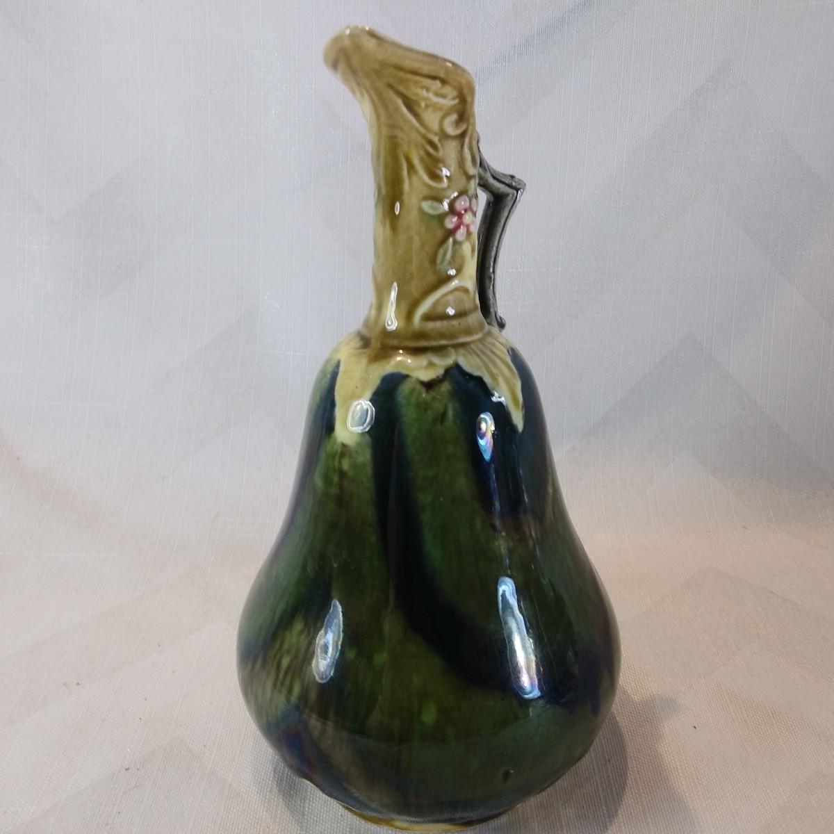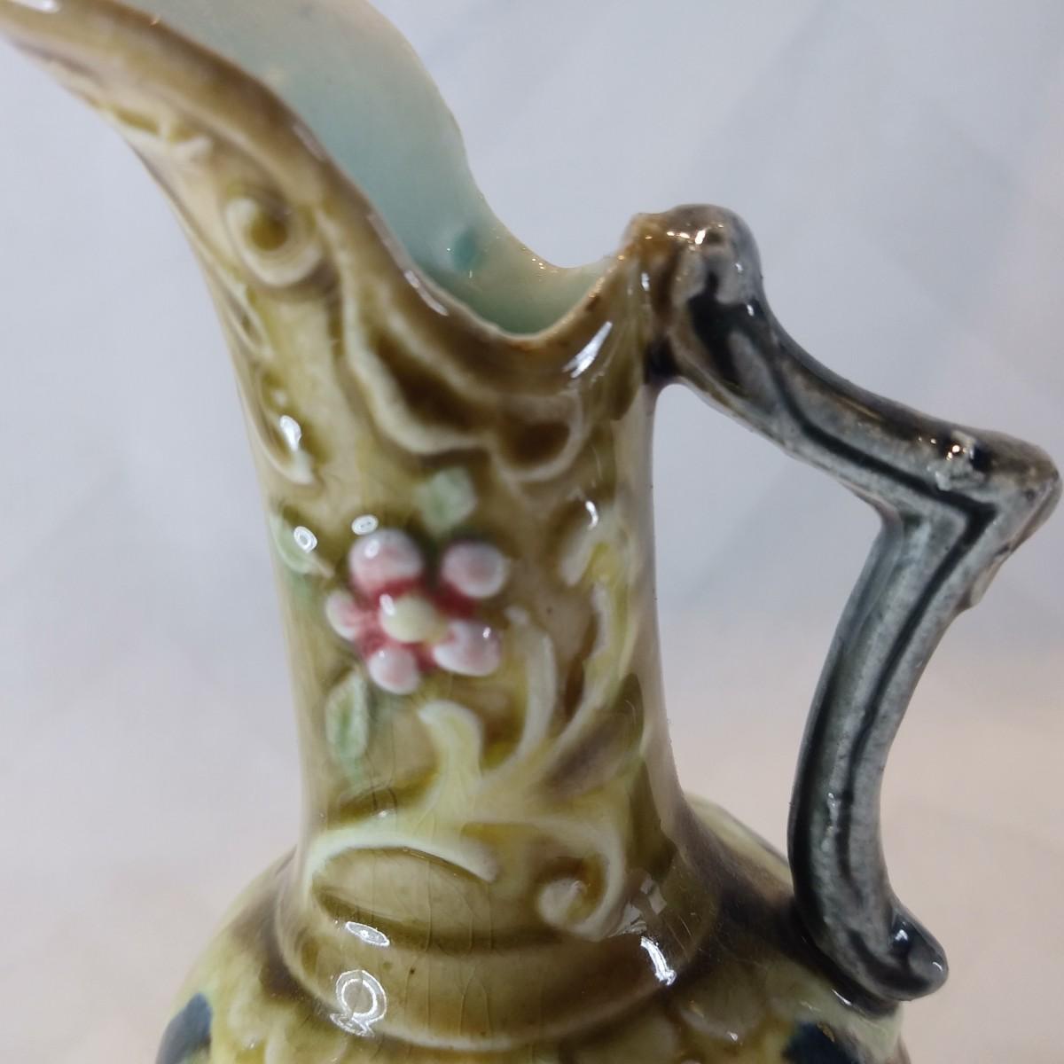 This auction lot is for a Majolica Ewer. With wonderful coloring and crafted top - this is a dainty looking Majolica ewer. It is in very good condition and ready for your display or collection.