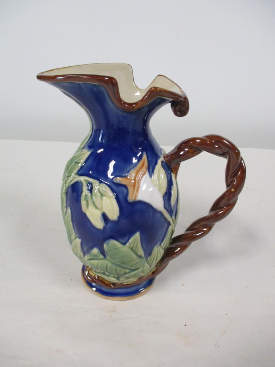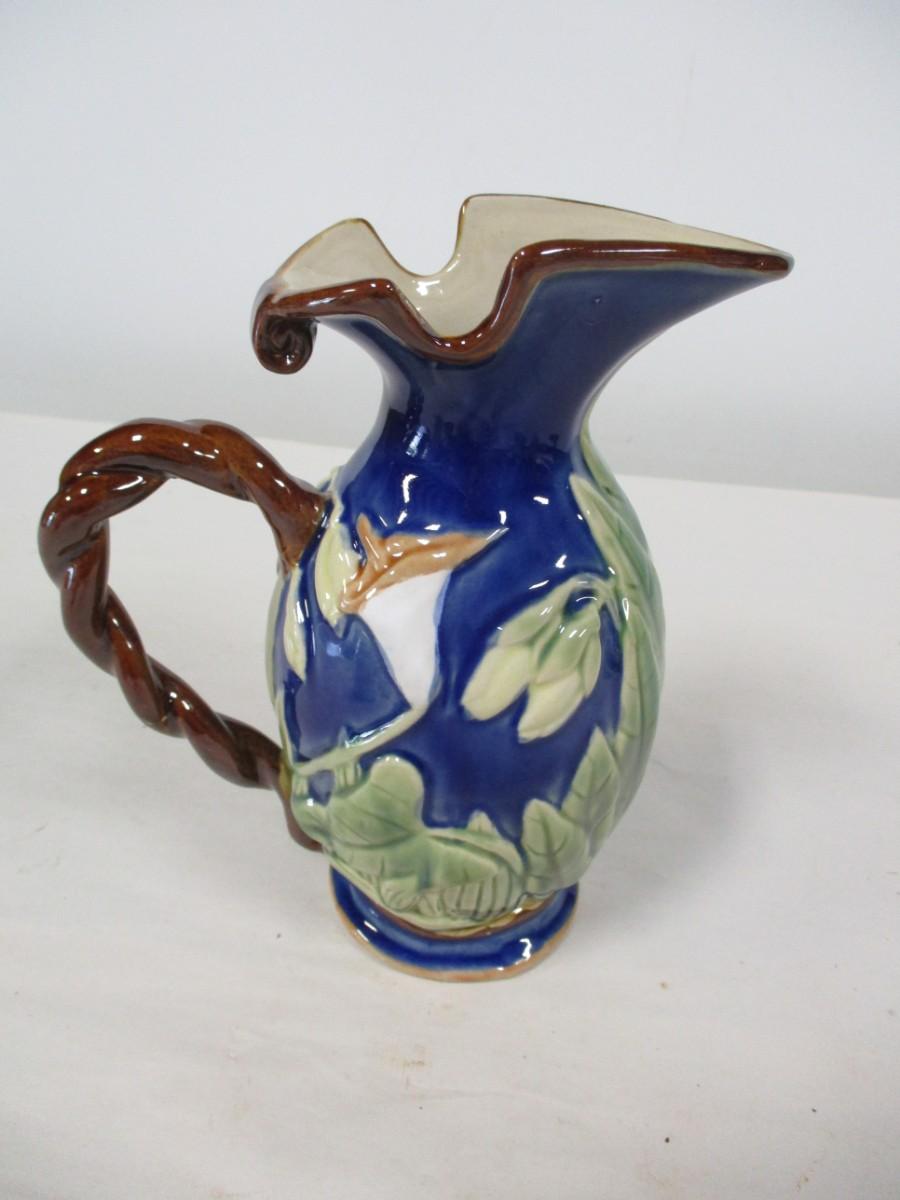 Majolica Glazed Hand Painted Pitcher