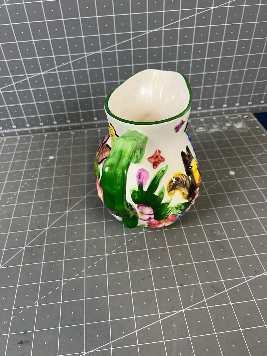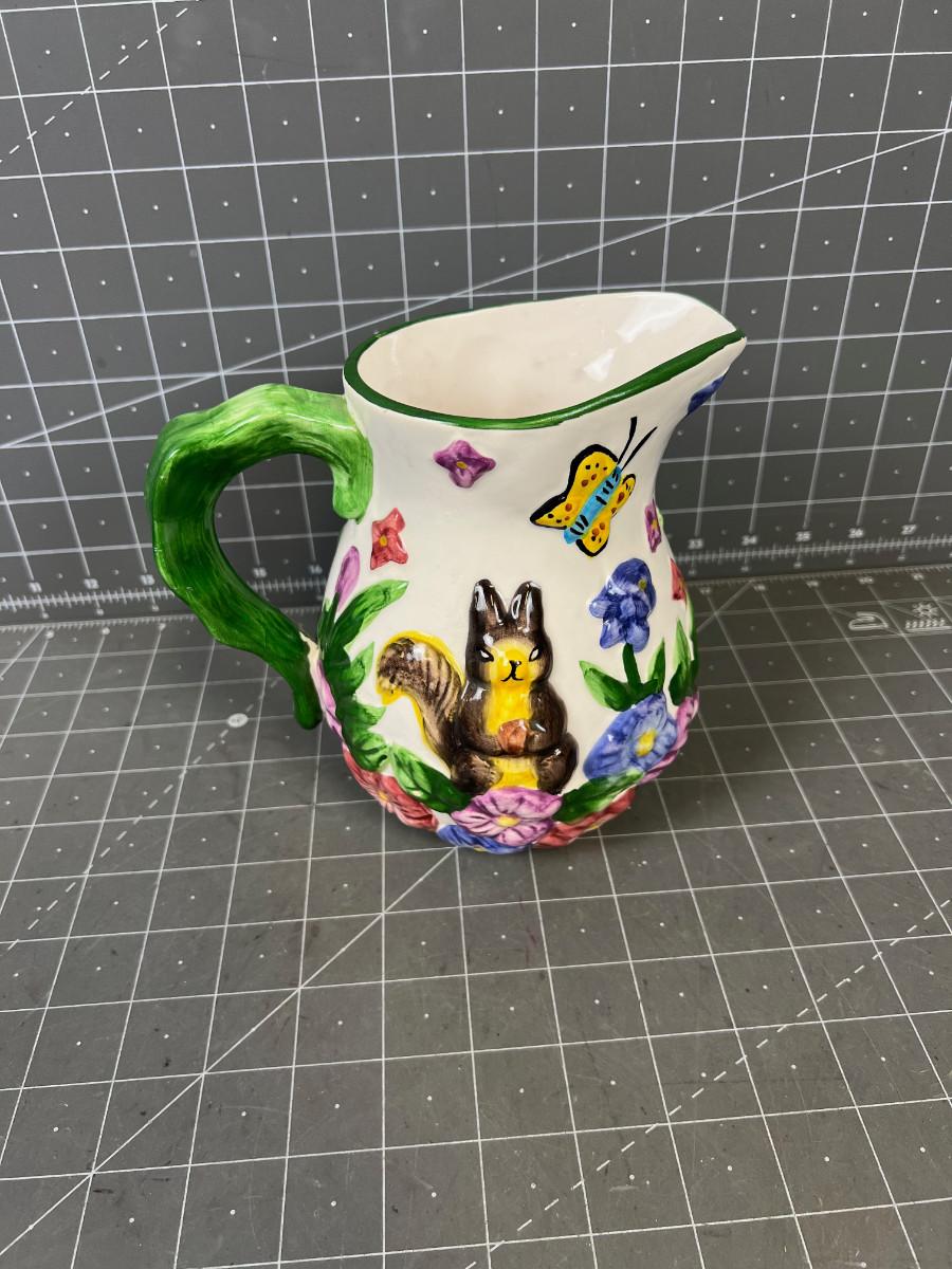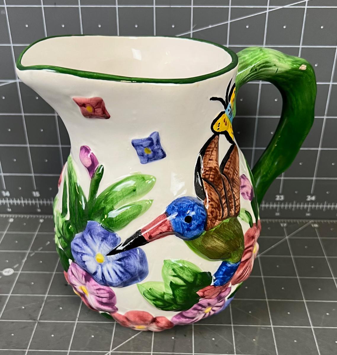 Majolica like Pitcher - with Hummingbird and Squirrel