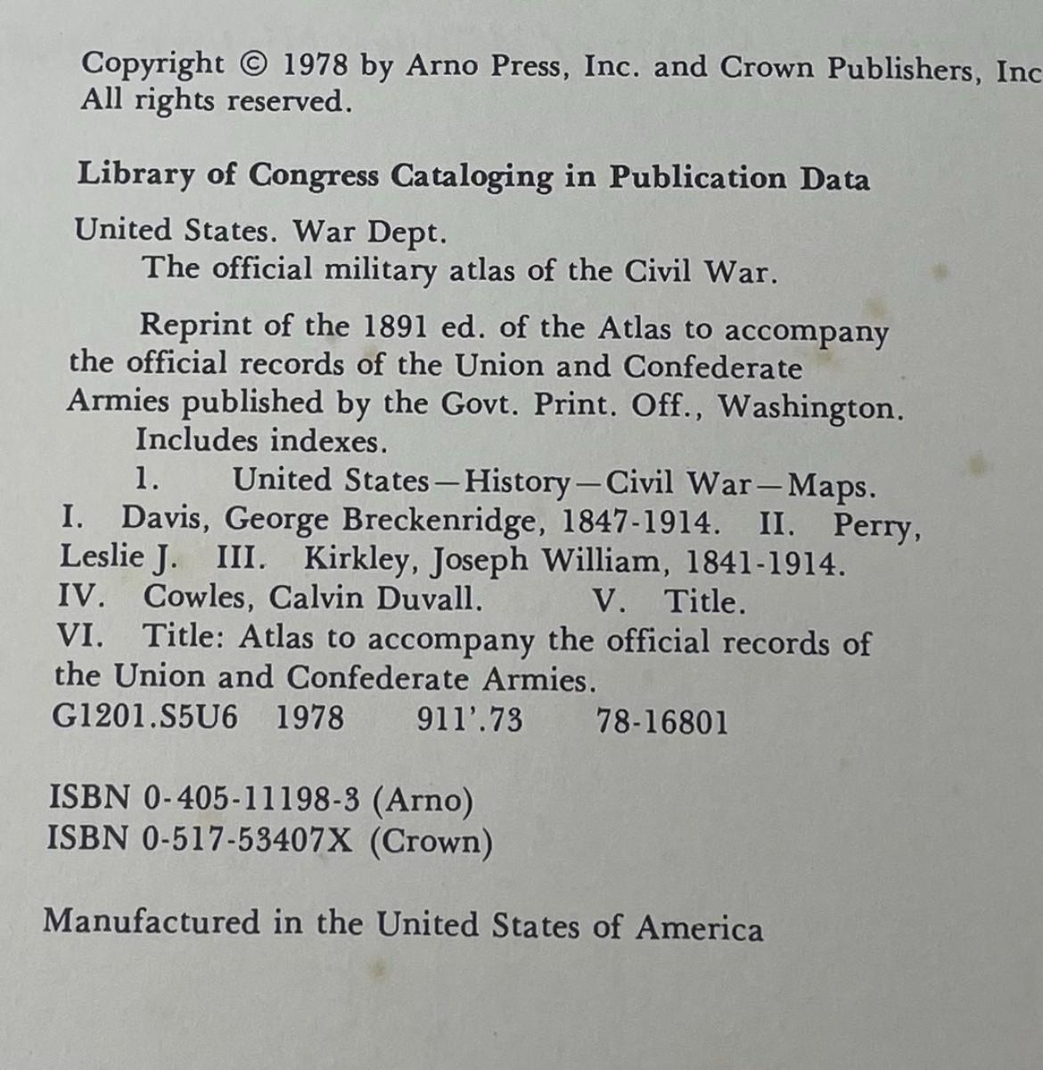 Description: Major George B Davis US Army, The Official Military Atlas of the Civil War; Material: Paper