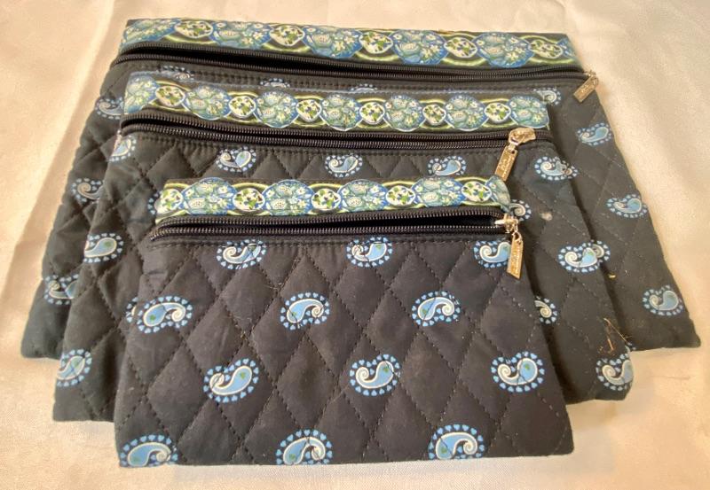 Set of 3 makeup bags. Lg is 9” x 12”, Med is 7” x 10” and sm is 5” x 7”