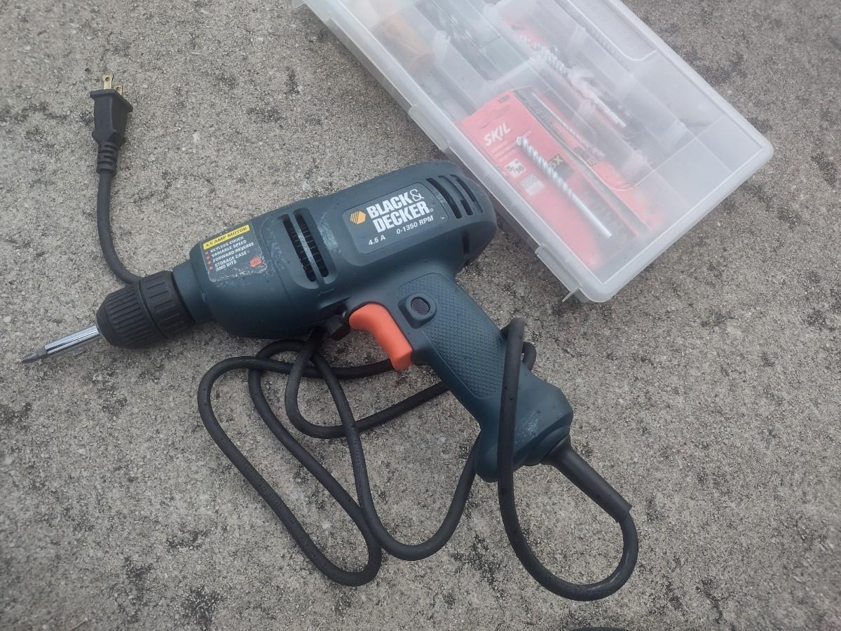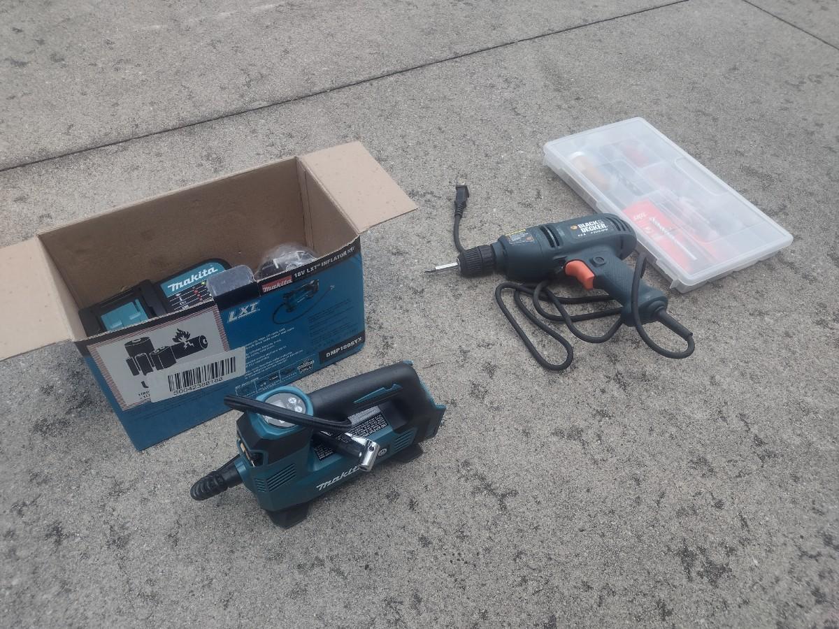 Makita Battery Air Pump and Black & Decker Electric Hand Drill with Drill Bit Kit