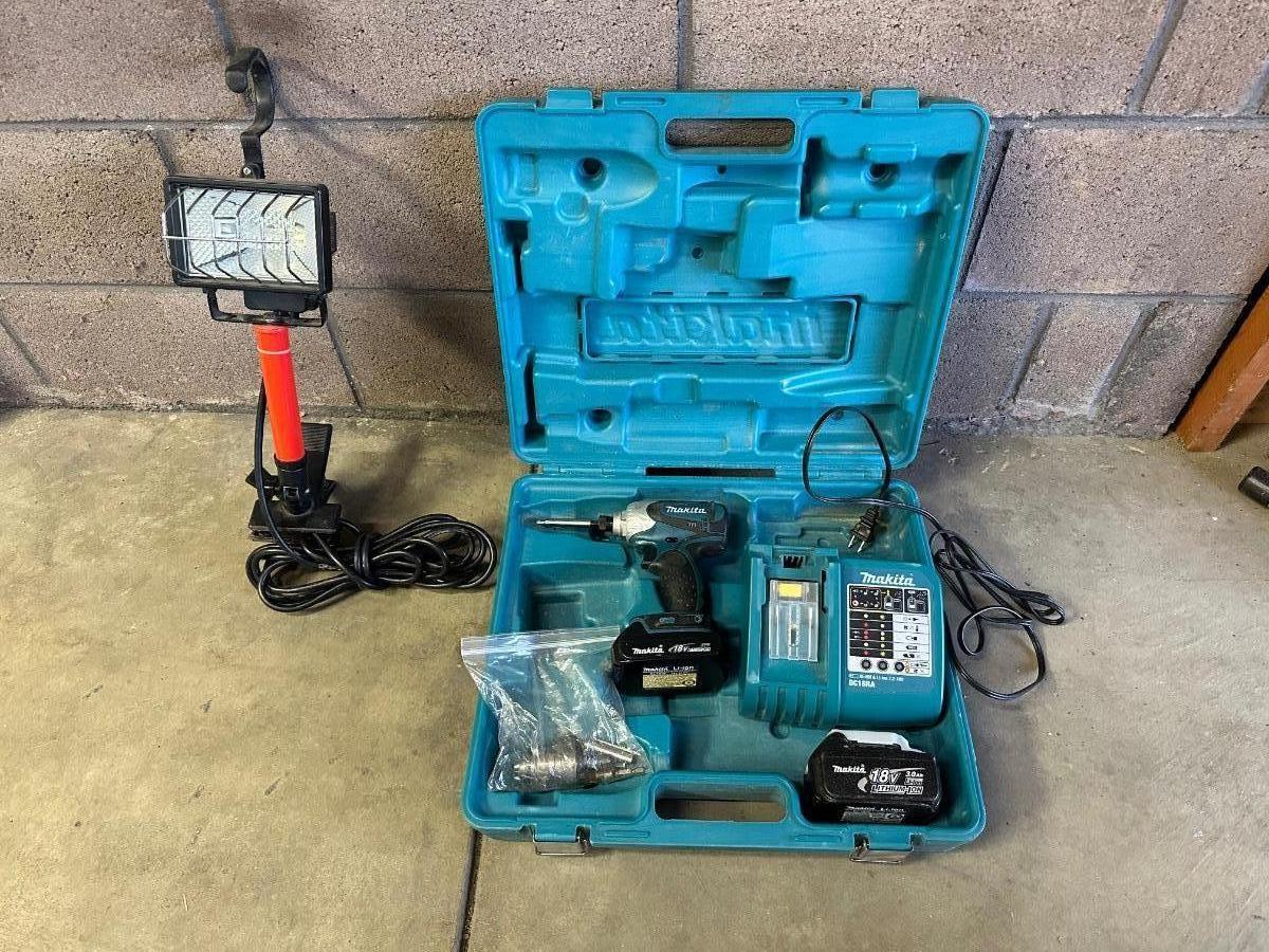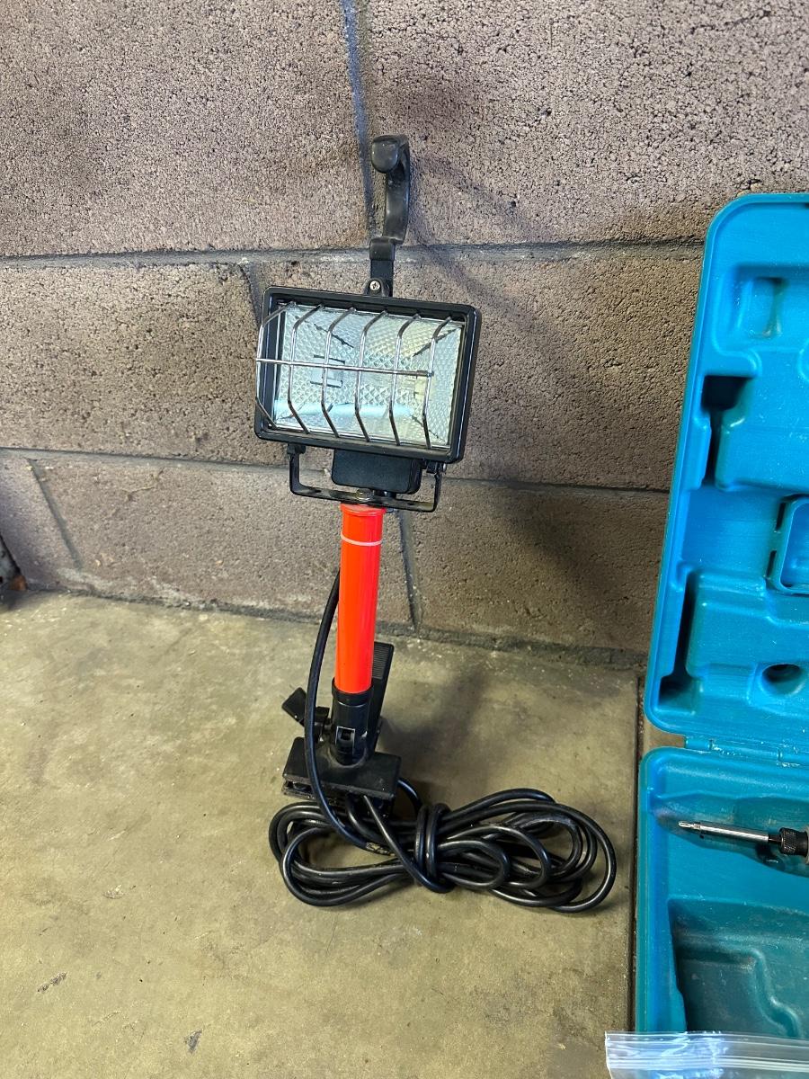 MAKITA CORDLESS DRILL AND A HALOGEN CLIP OR HANG WORK LIGHT