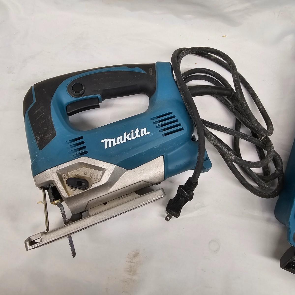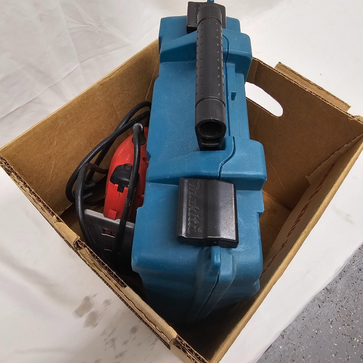 Two corded jigsaws, one Skil and one Makita with hardshell case. Case measures 13.5" x 15" x 4"H. Both items have quick change blade holders and powered on when plugged in. Also includes extra set of Bosch jigsaw blades NIB and Makita manual. See photos for details. Local pickup only.