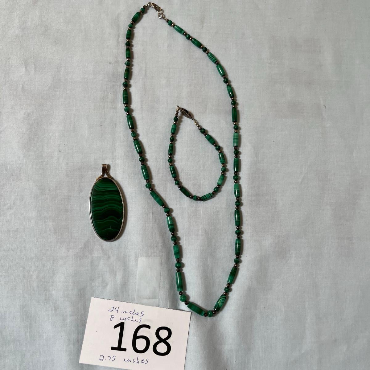 Malachite with Sterling silver. Bracelet, Necklace, & pendant.