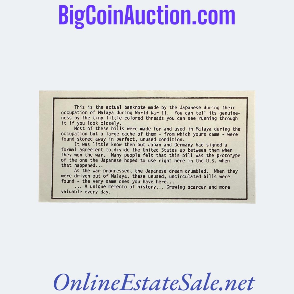 MALAYA WWII 10 DOLLAR BILL