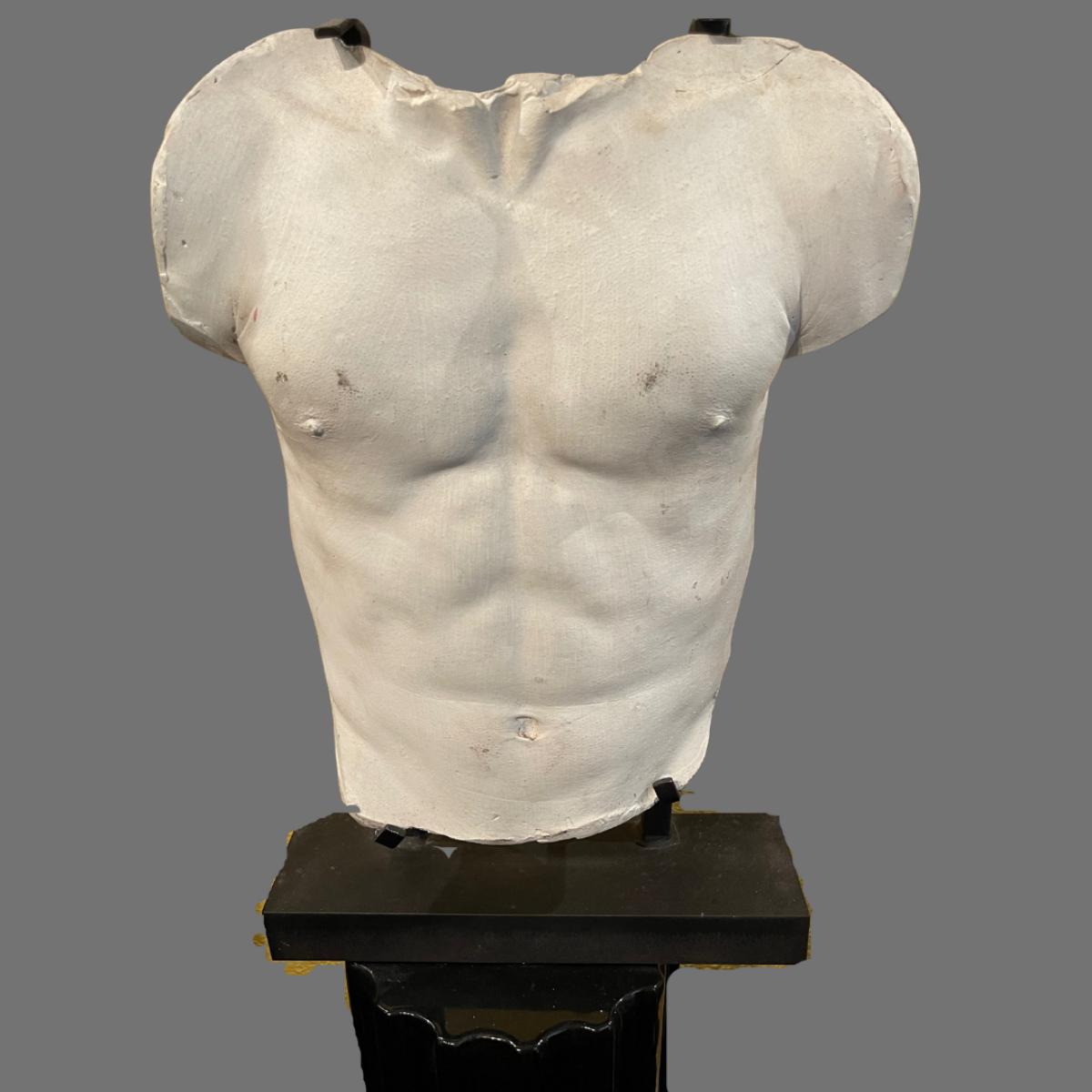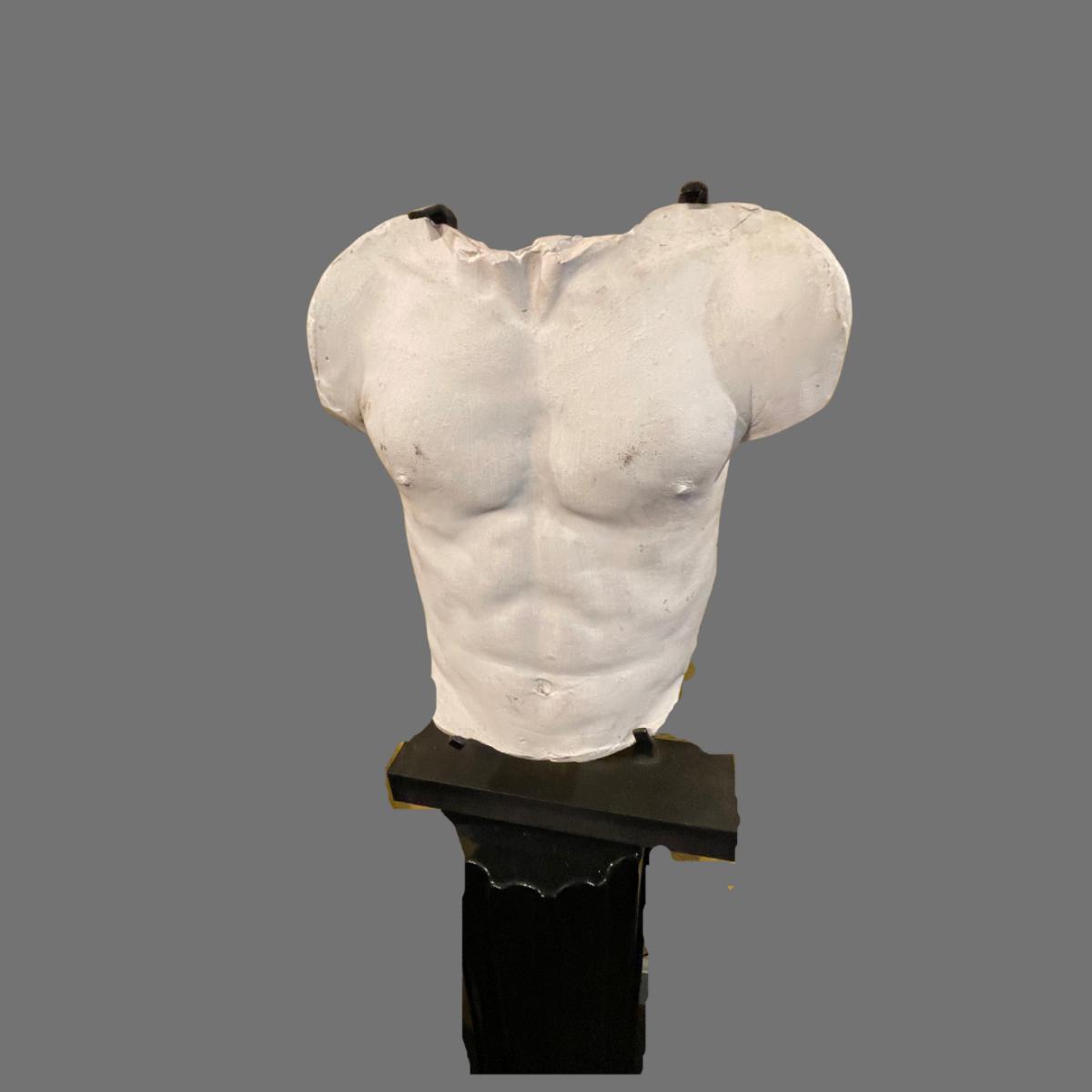 Male Concrete Bust with Black Pedestal