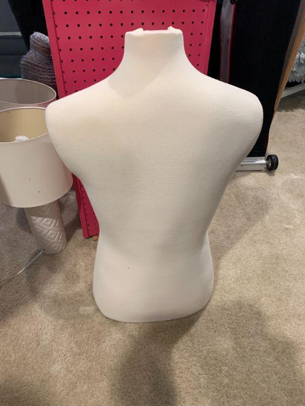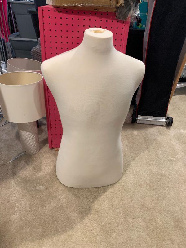 Male dress form, inlcudes brand new oak colored base (not pictured, same as those on the plus size dress forms).